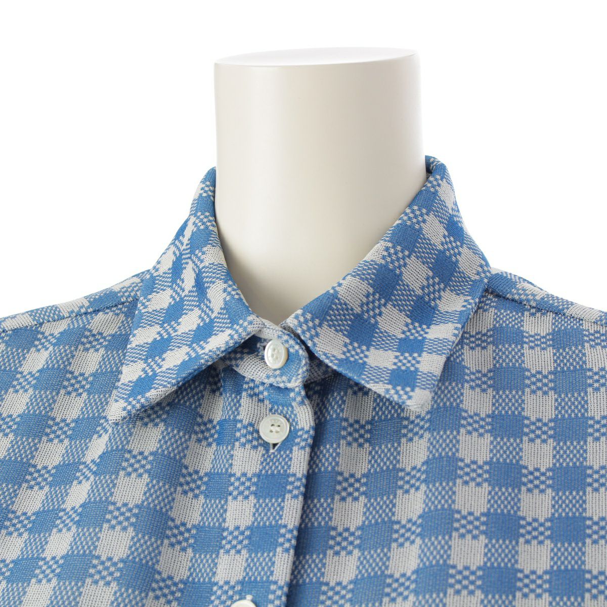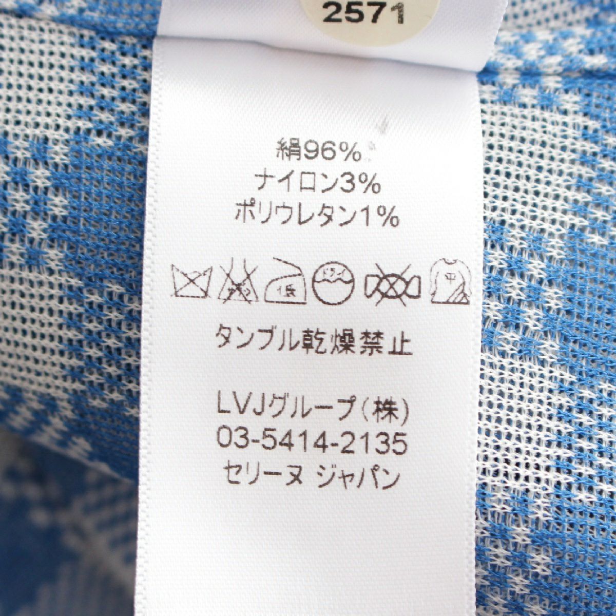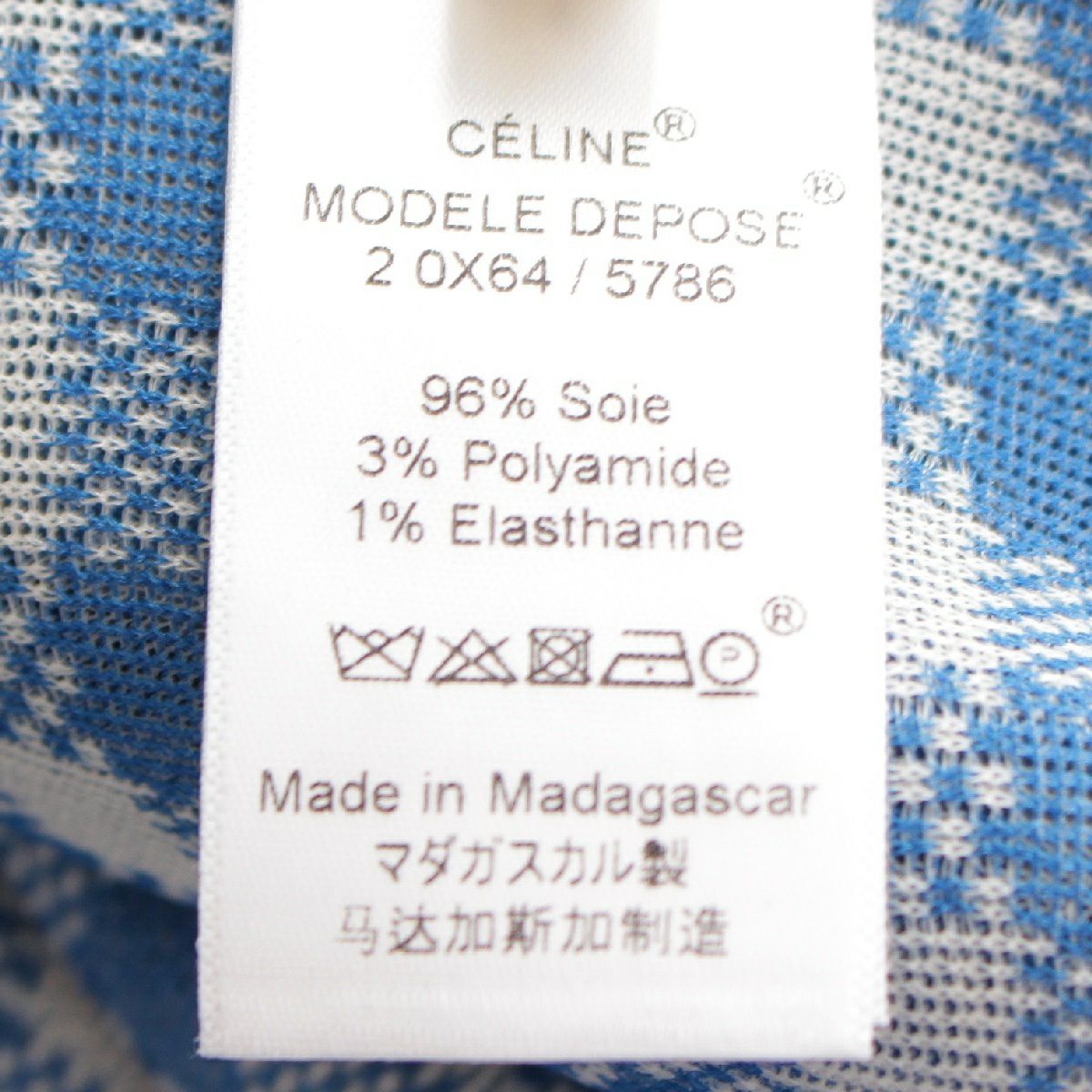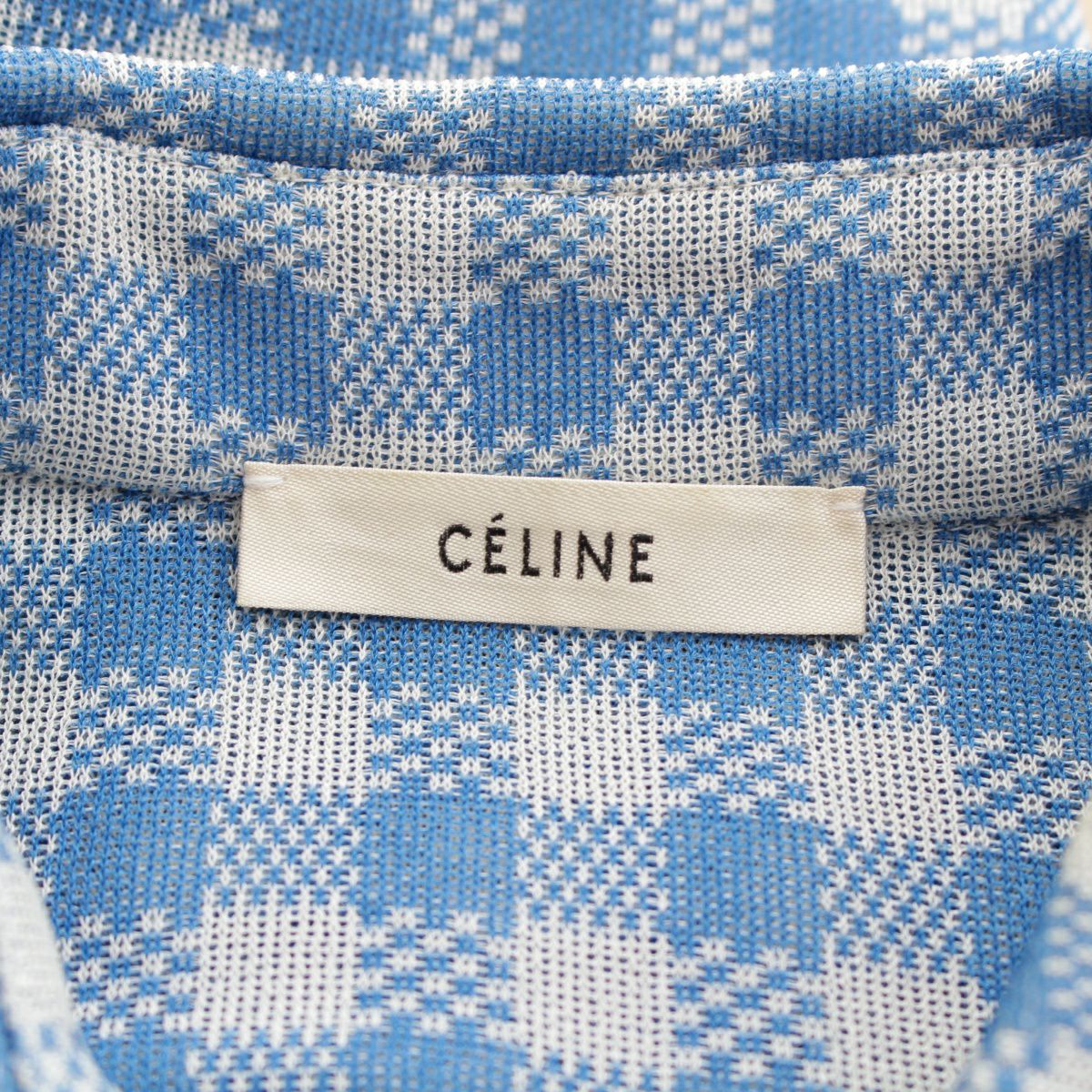 セリーヌ シルク フィービー期 チェック柄 ブラウス シャツ トップス 2 0X64 ブルー×グレー 34
