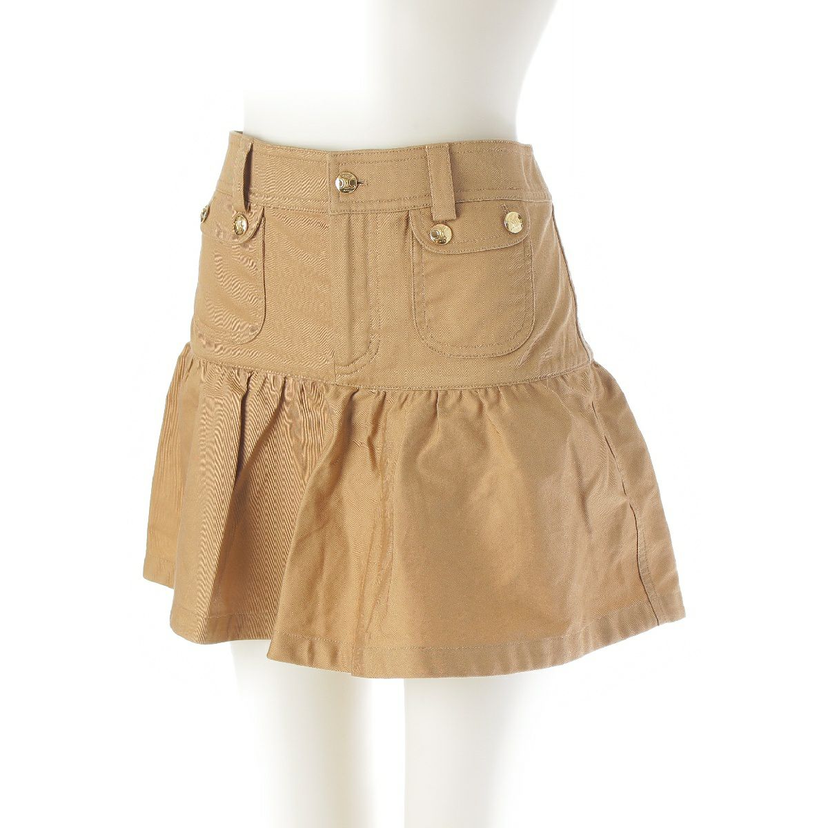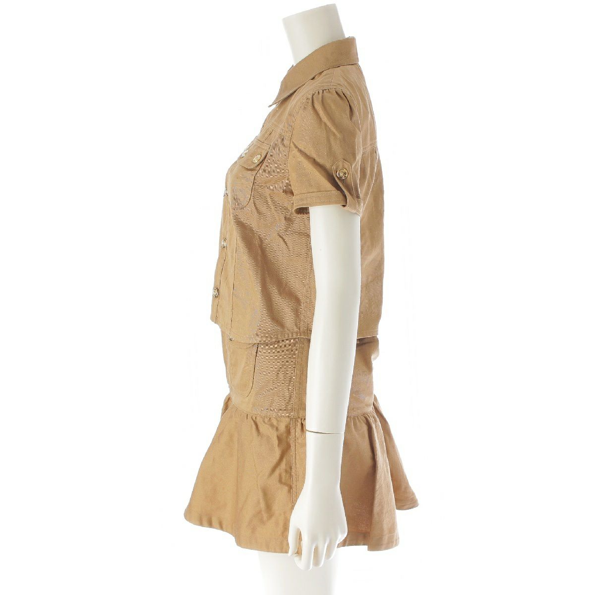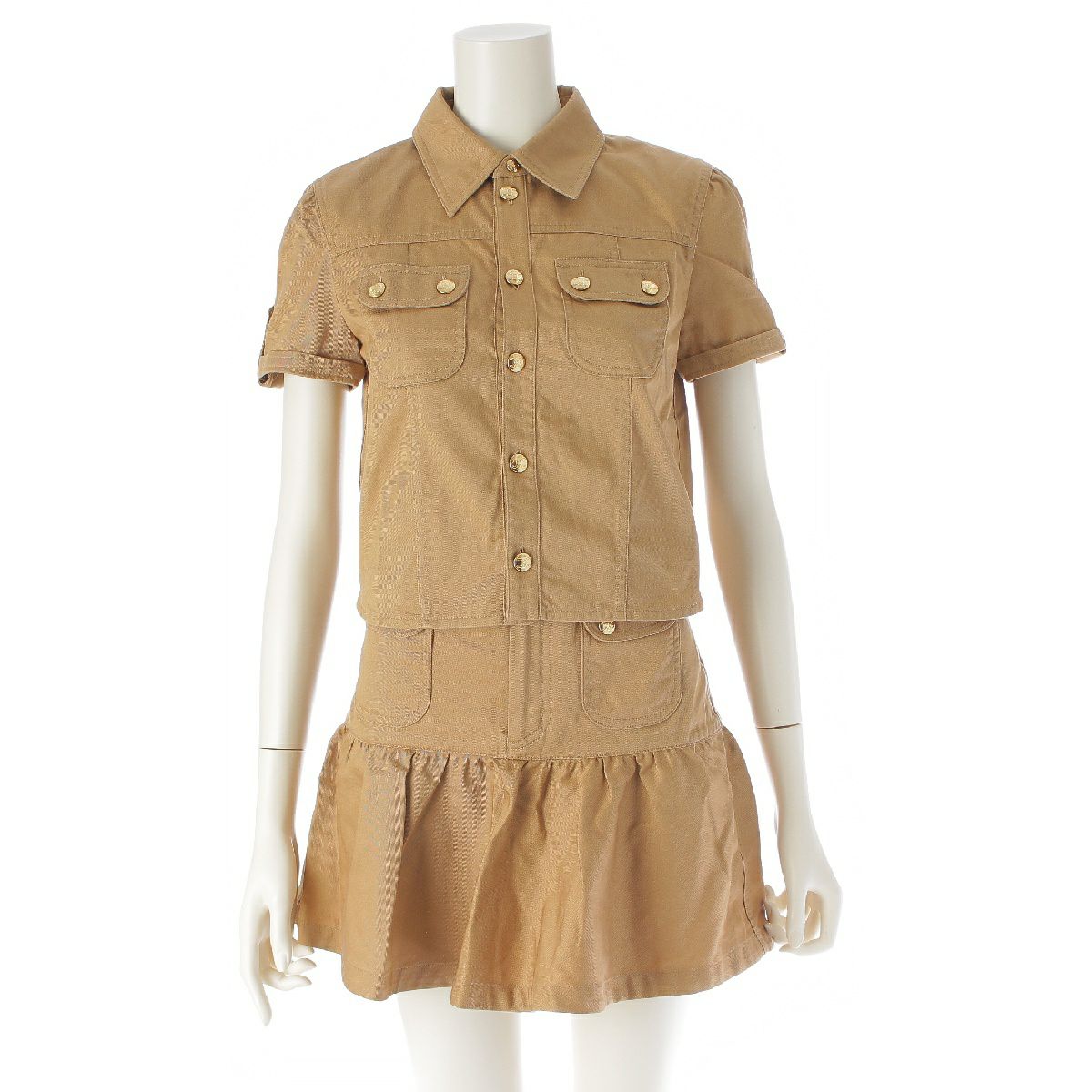 セリーヌ 23年 コットンツイル トリオンフ 金ボタン アーミー クロップドシャツ スカートセットアップ 半袖 ミニ丈 ミリタリーポケット 2B05A539W.04CA/2J722539W.04CA キャラメル 34