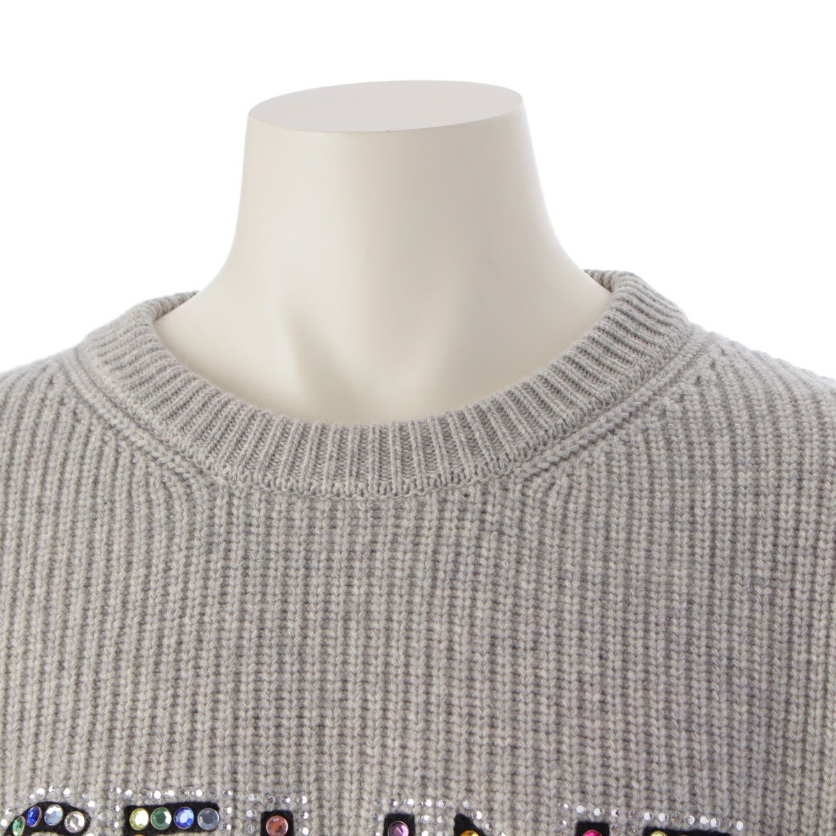 セリーヌ ウール ロゴ カラーストーン クルーネック 長袖 ニット セーター トップス 2AG77445U グレー M