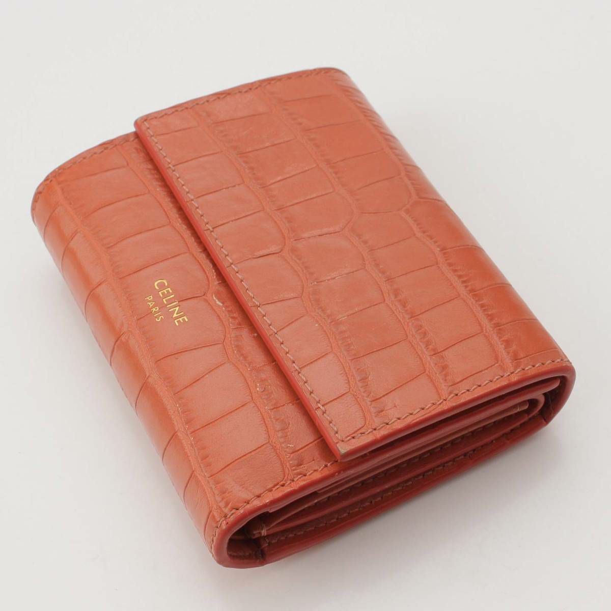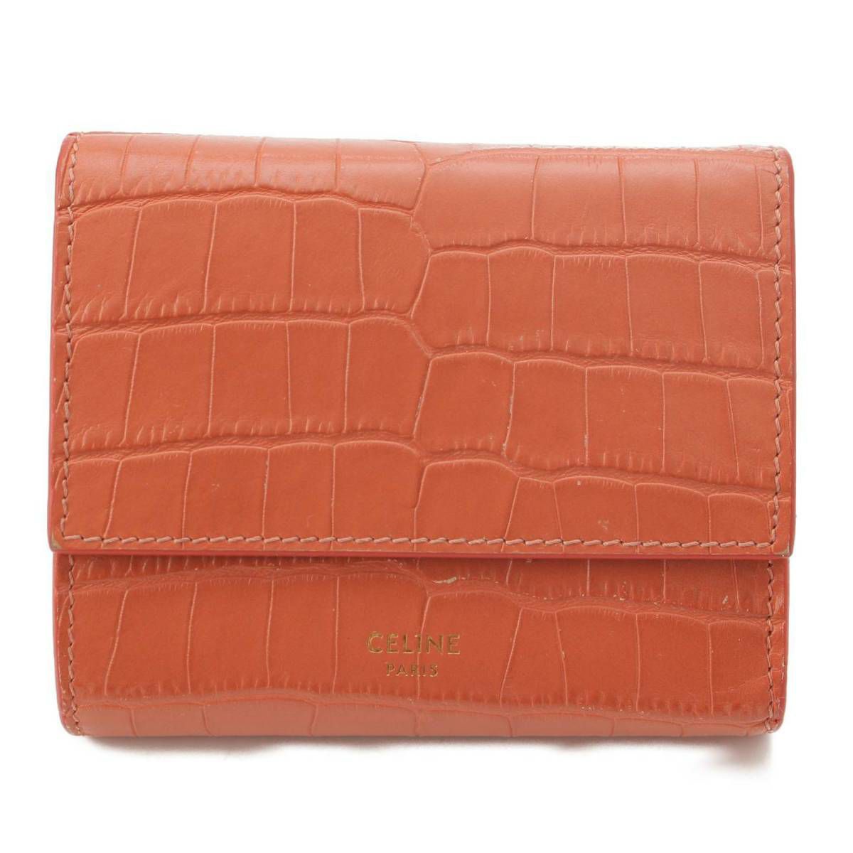 セリーヌ Celine スモールトリフォールド 型押しレザー コンパクトウォレット 三つ折り財布 ピンク