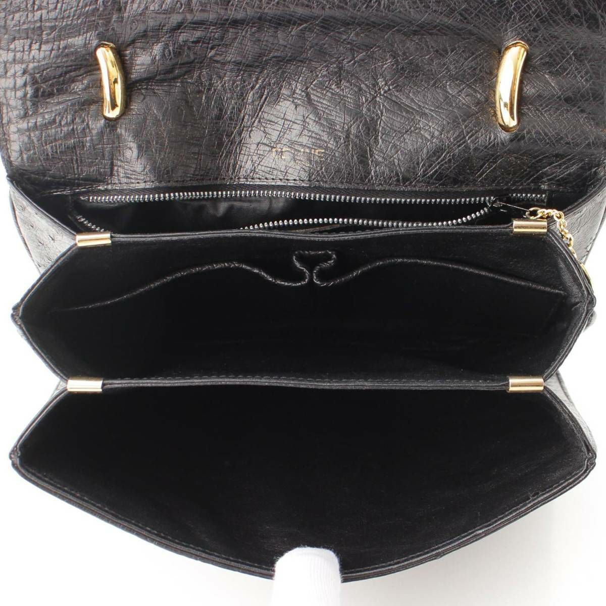 セリーヌ オールドセリーヌ ヴィンテージ オーストリッチ 馬車金具 ハンドバッグ ブラック