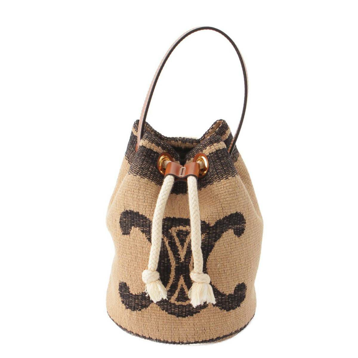 セリーヌ Celine トリオンフ ティーン コットン ドローストリング 巾着 ハンドバッグ 196532 ブラウン