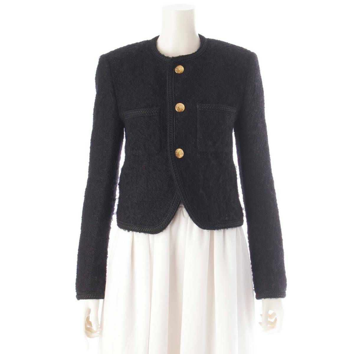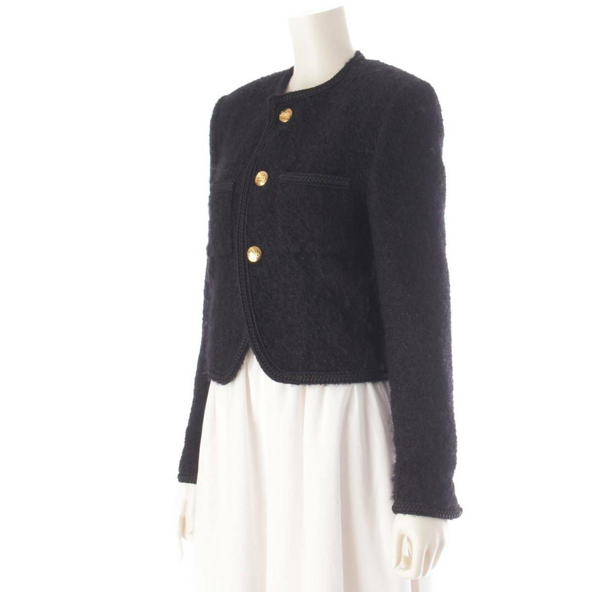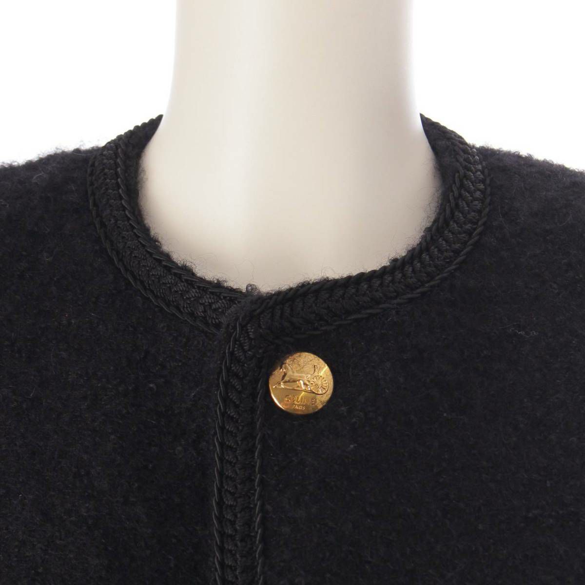 セリーヌ Celine 馬車ボタン ノーカラー シングル ジャケット ブラック