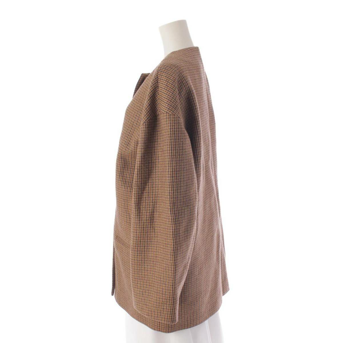 セリーヌ Celine 21AW ウール チェック ノーカラージャケット ミドルコート 2M679752N ブラウン 40