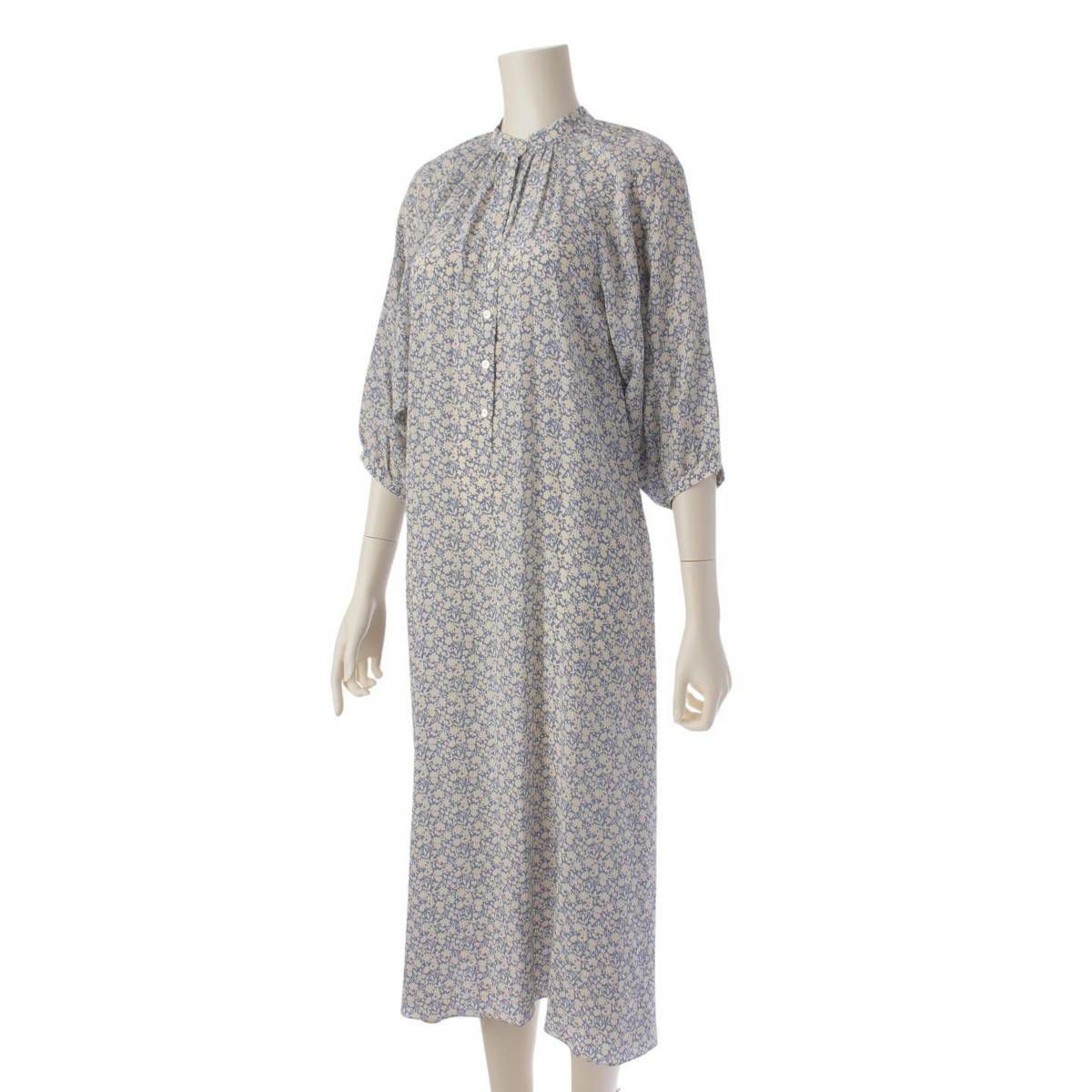 セリーヌ Celine FOLK DRESS IN PRINTED SILK CREPON 花柄 シルク ワンピース 2R091757L ブルー 36