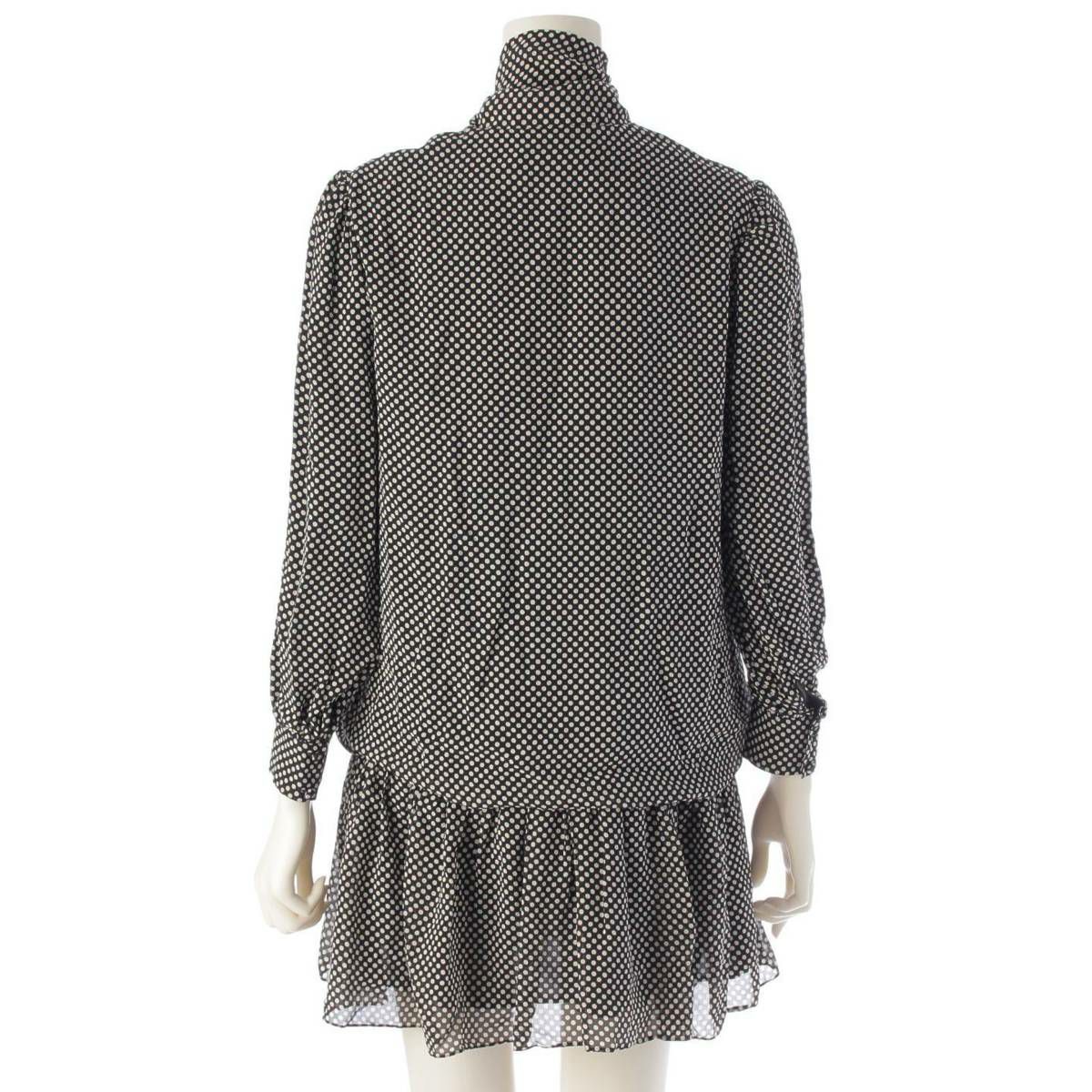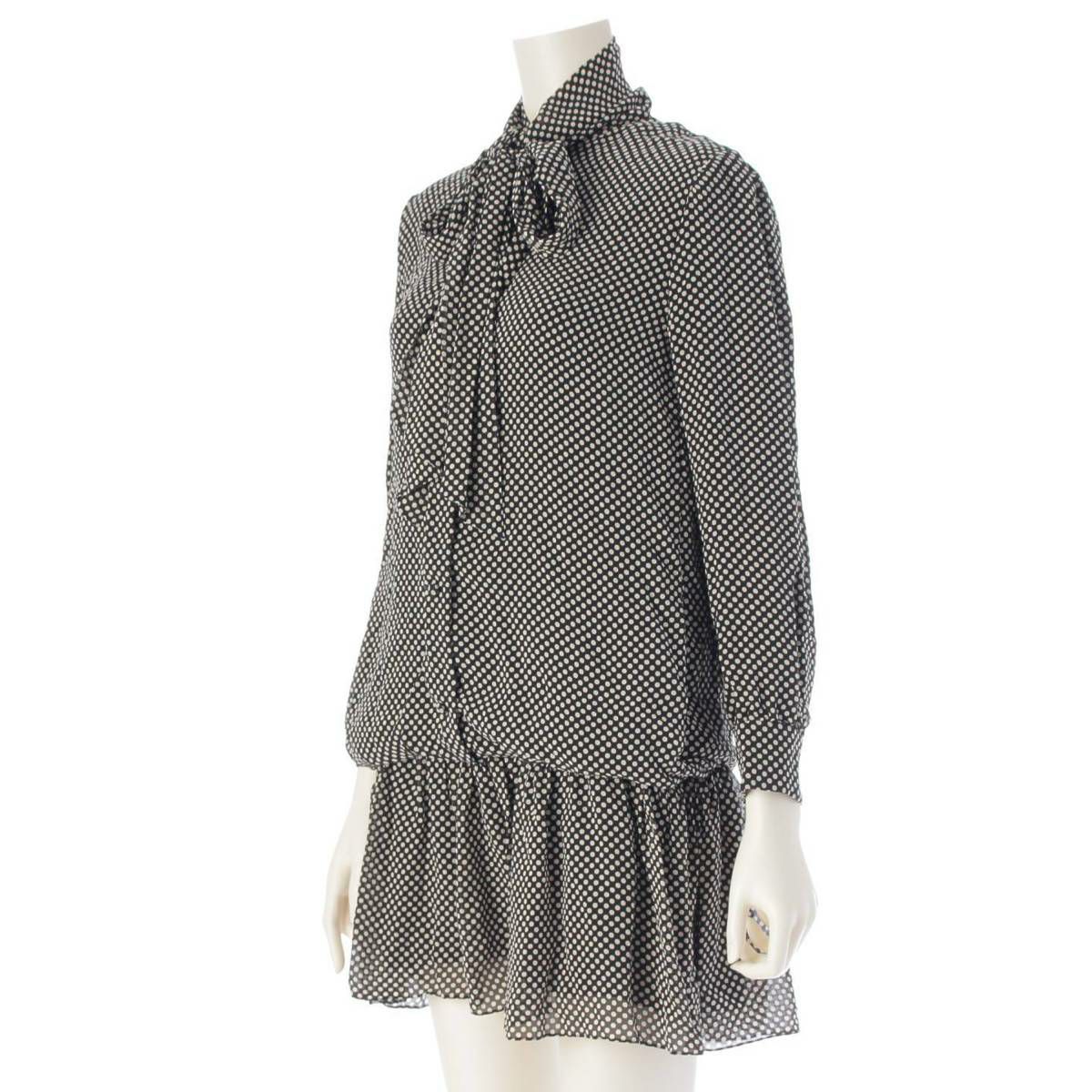 セリーヌ 20ss ボウタイ シルク ドット ミニ ワンピース ドレス 2R353150E ブラック 36