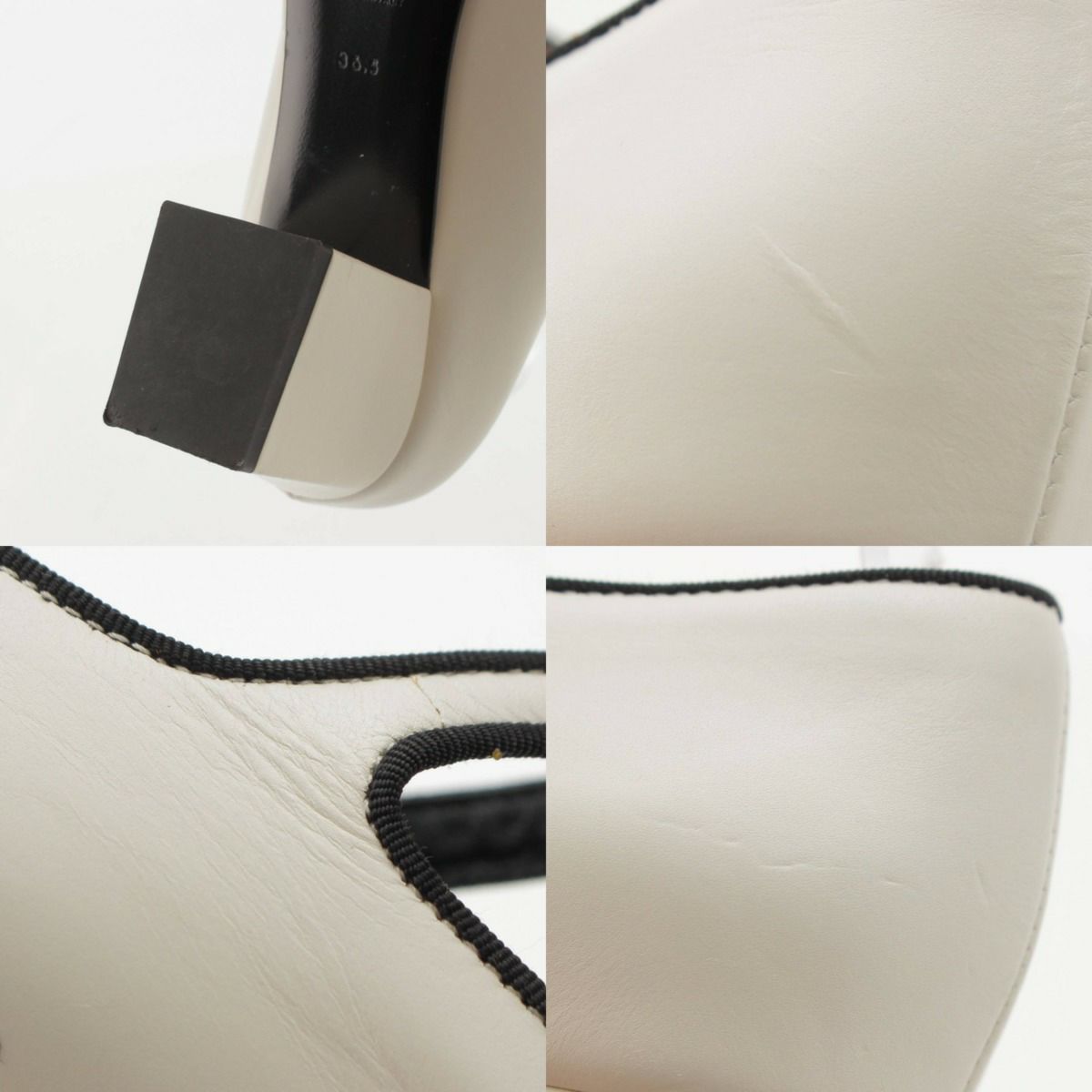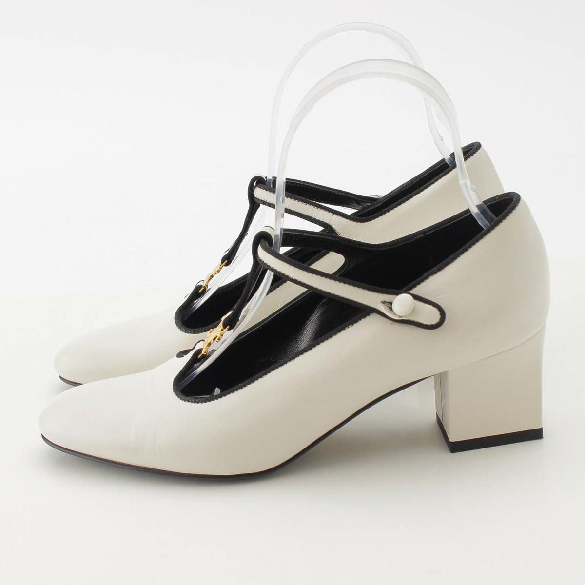 セリーヌ トリオンフ Tストラップ レザー パンプス ヒール シューズ ホワイト 36.5