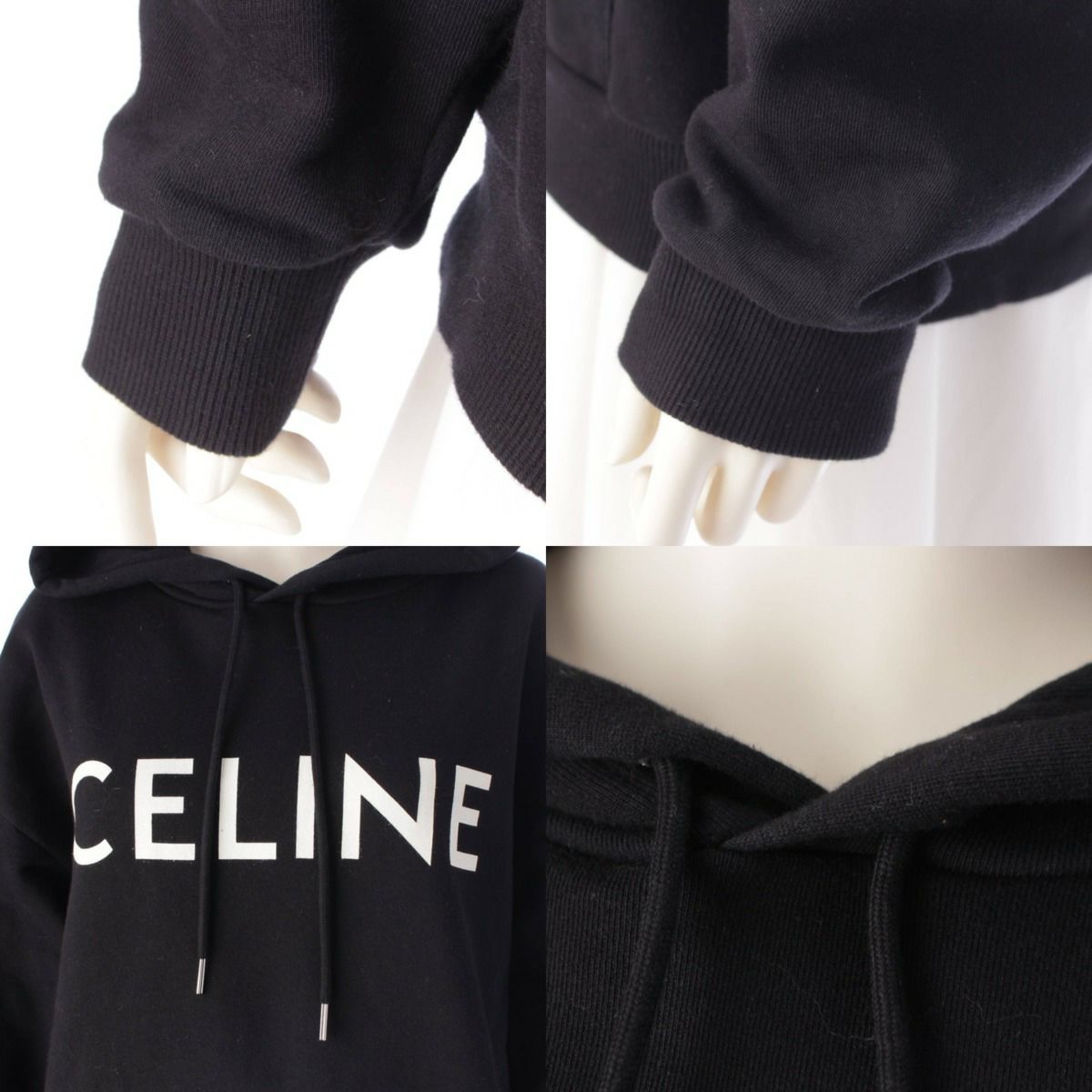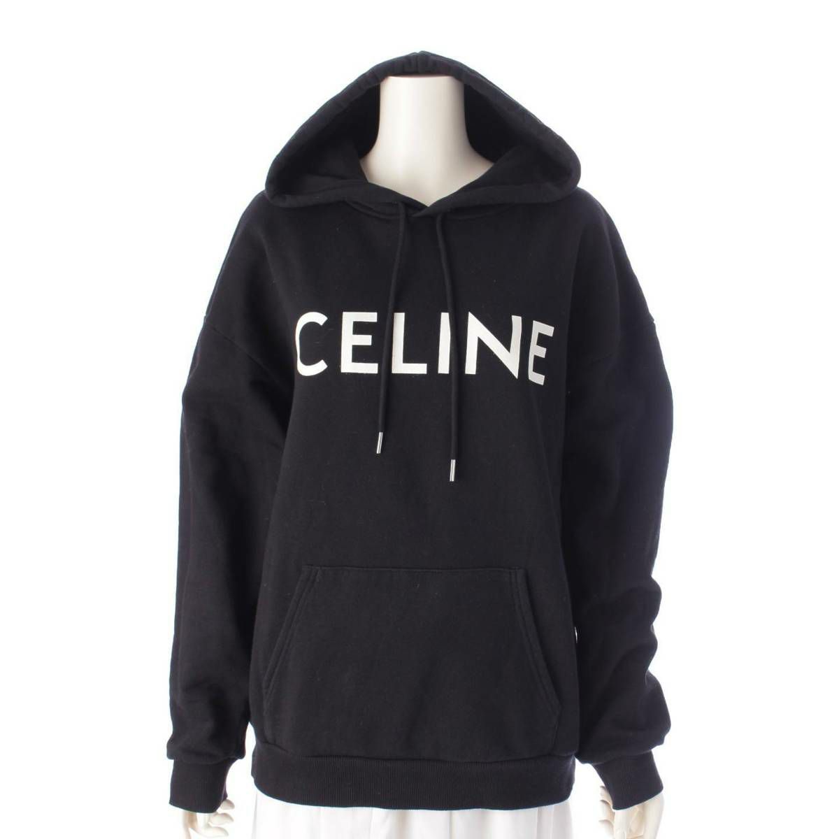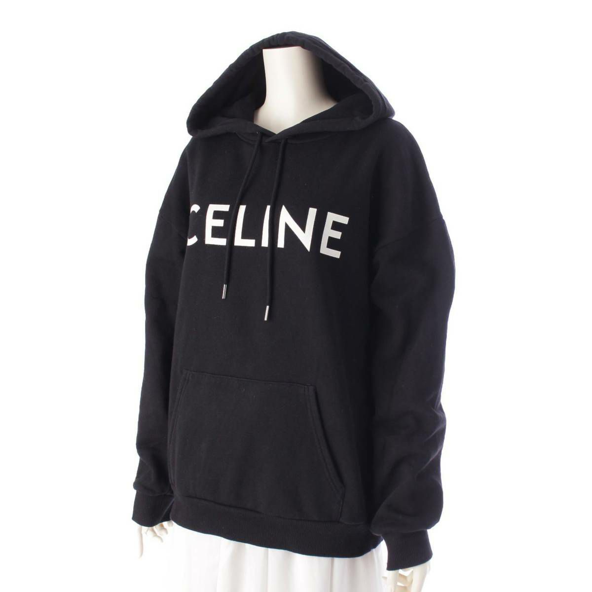 セリーヌ 21AW ロゴ プリント コットン 長袖 フーディ パーカー トップス 2Y369052H ブラック L