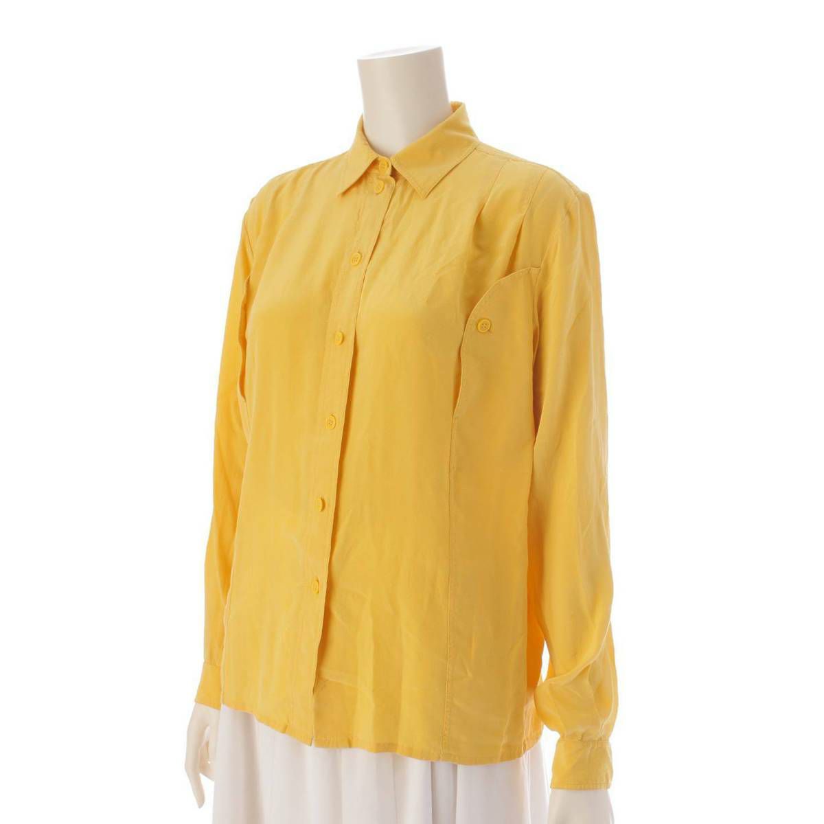 セリーヌ Celine フィービー期 シルク 長袖 シャツ ブラウス 2 0DW2 891B イエロー 36