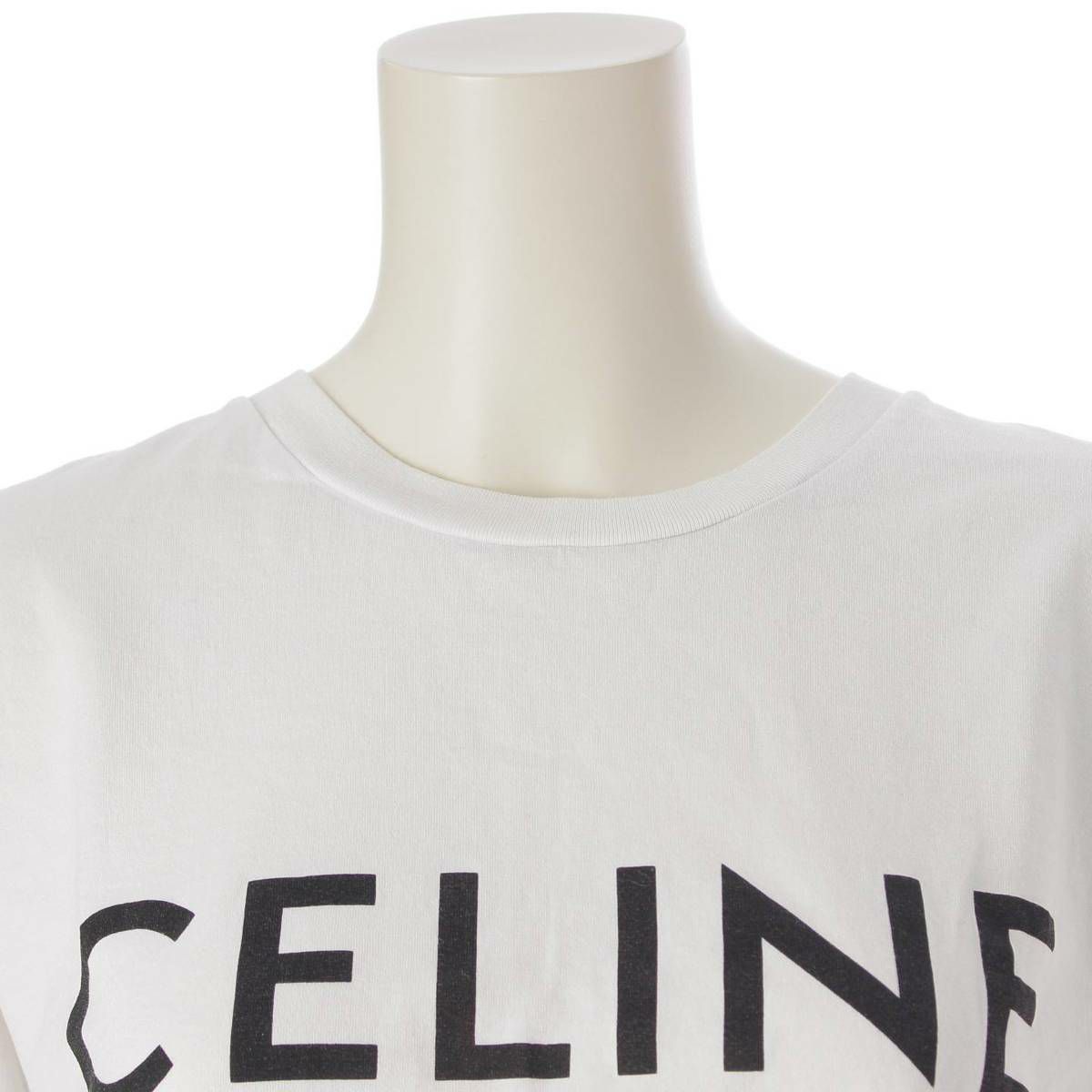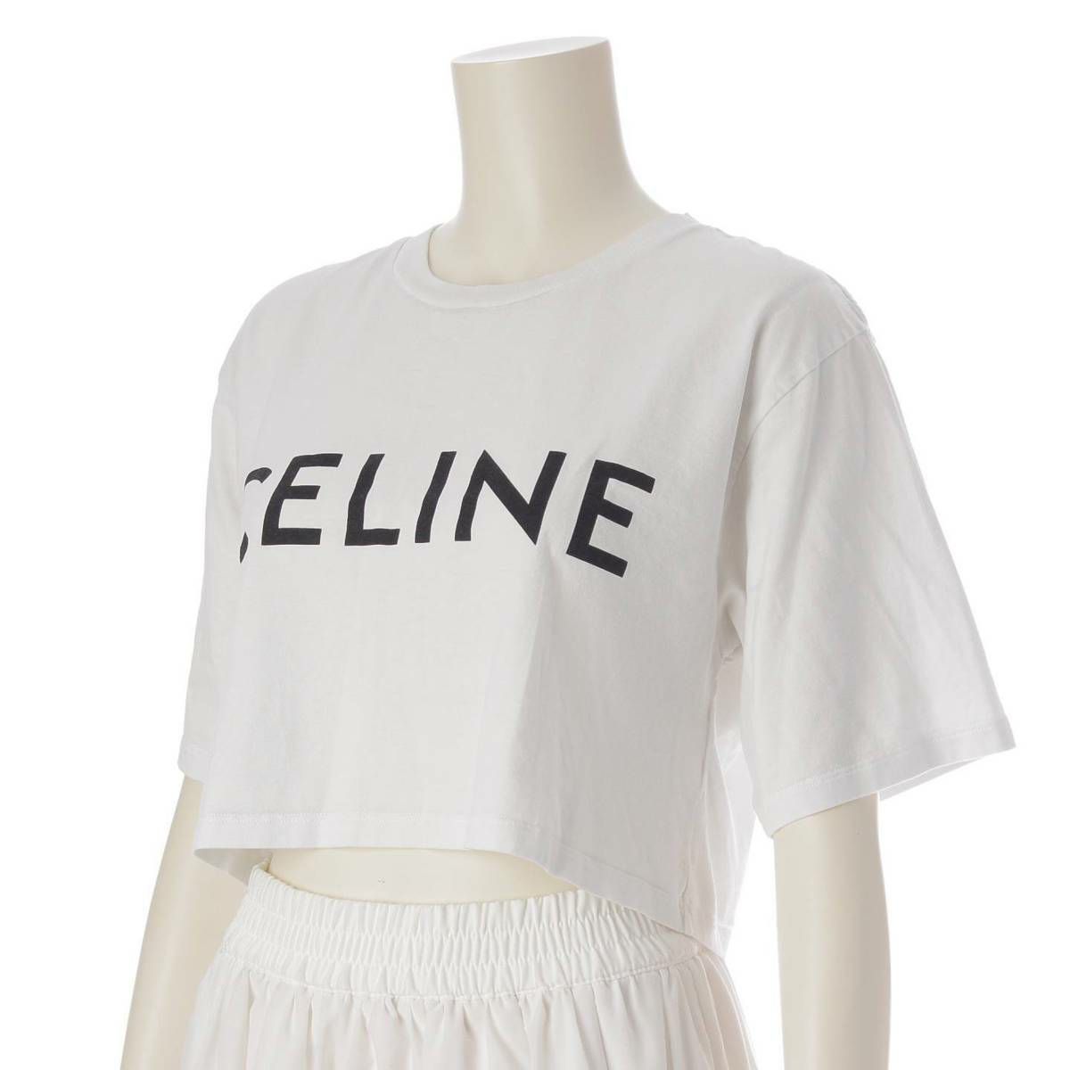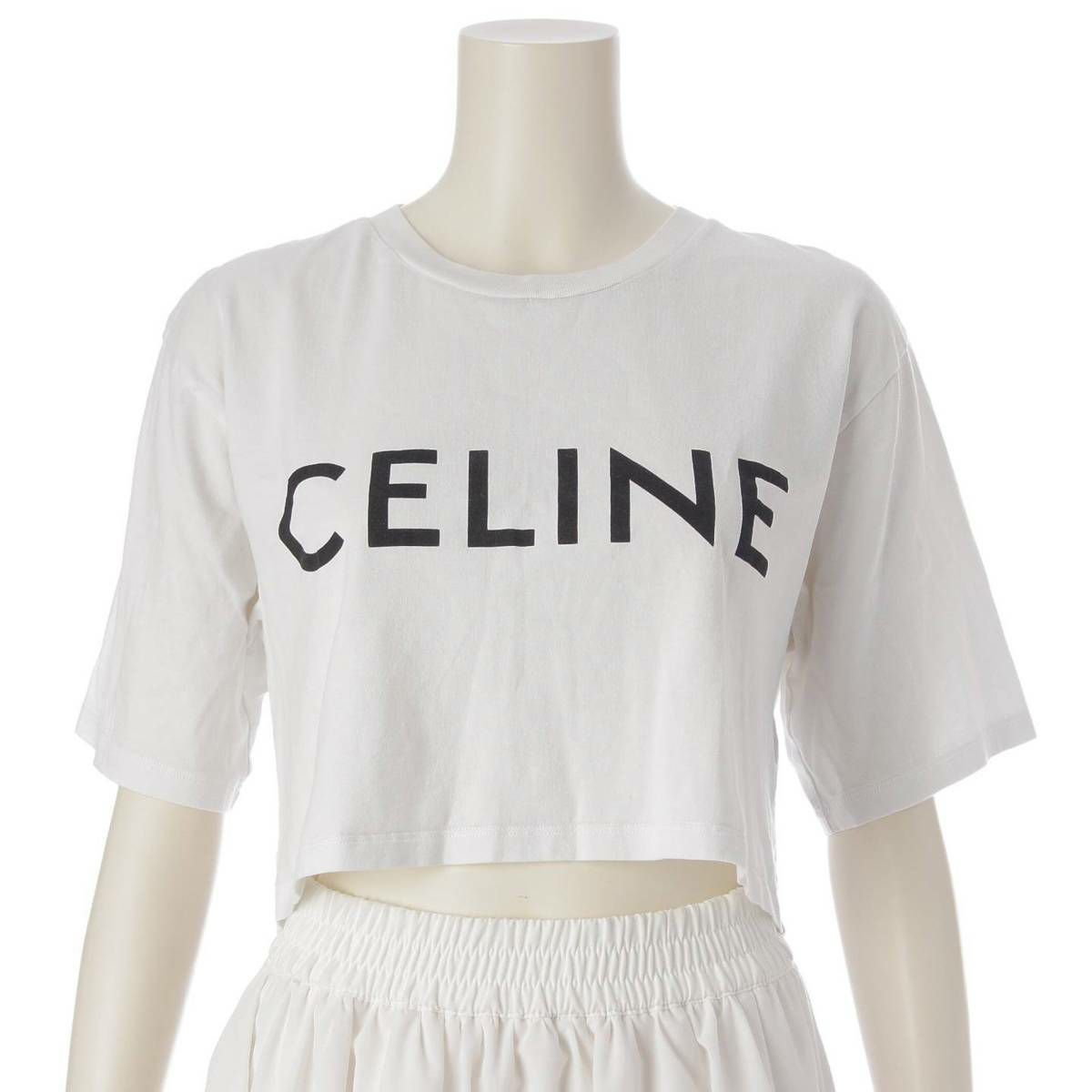 セリーヌ Celine ロゴ プリント クロップド Tシャツ 半袖シャツ トップス 2X761671Q ホワイト S