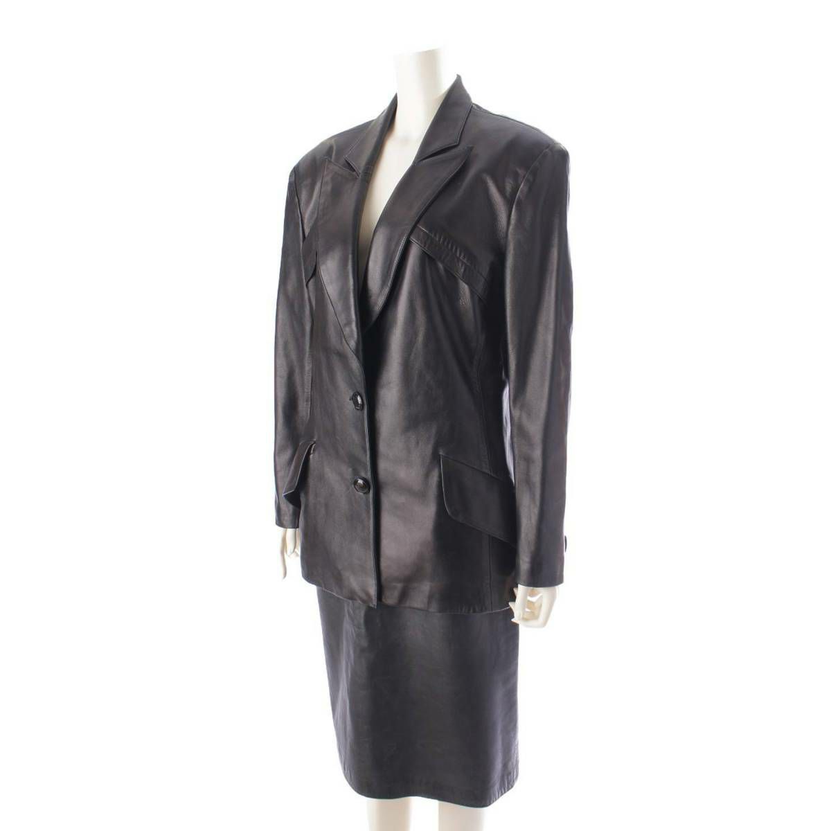 セリーヌ Celine トリオンフ レザー ジャケット&スカート セットアップ ブラック 42/44