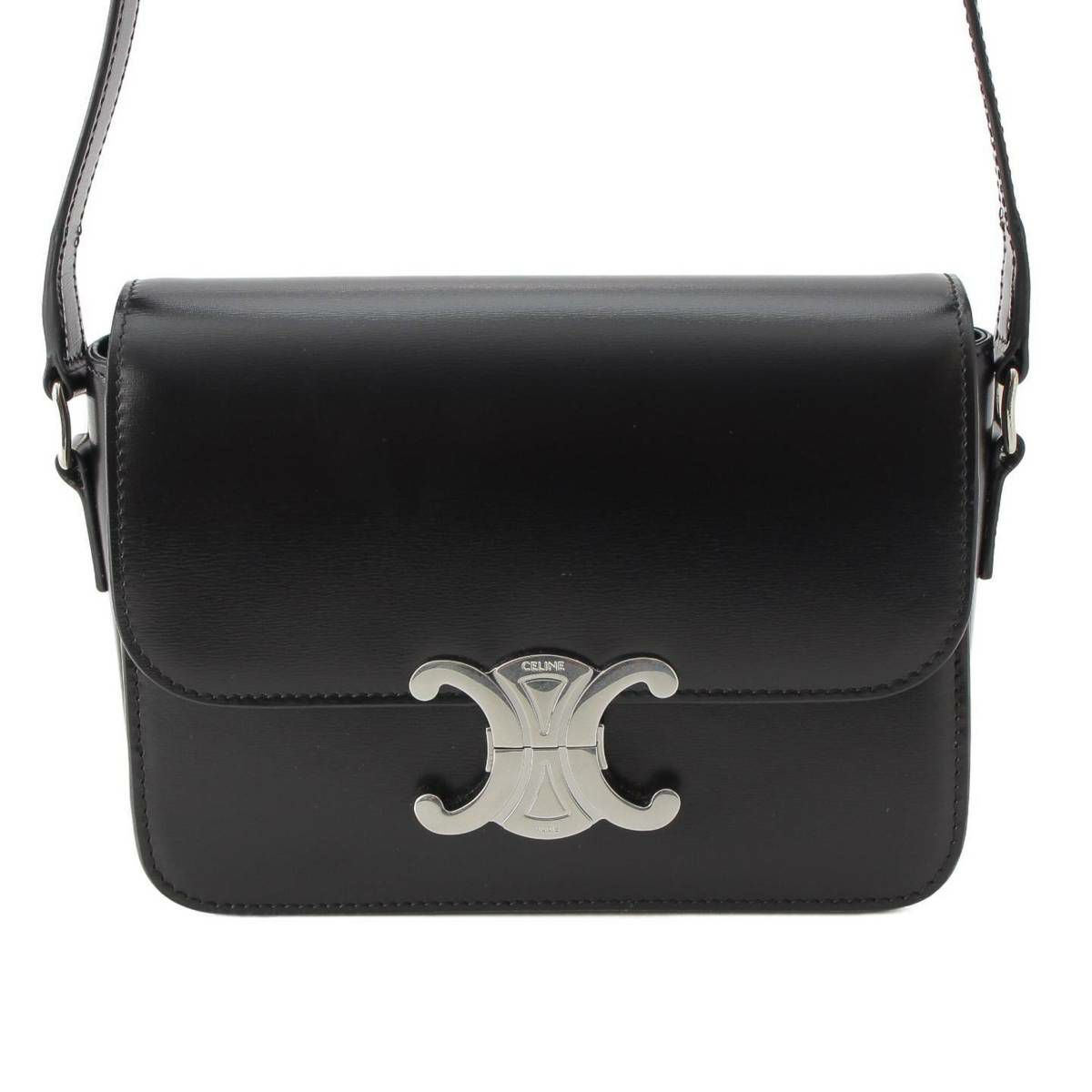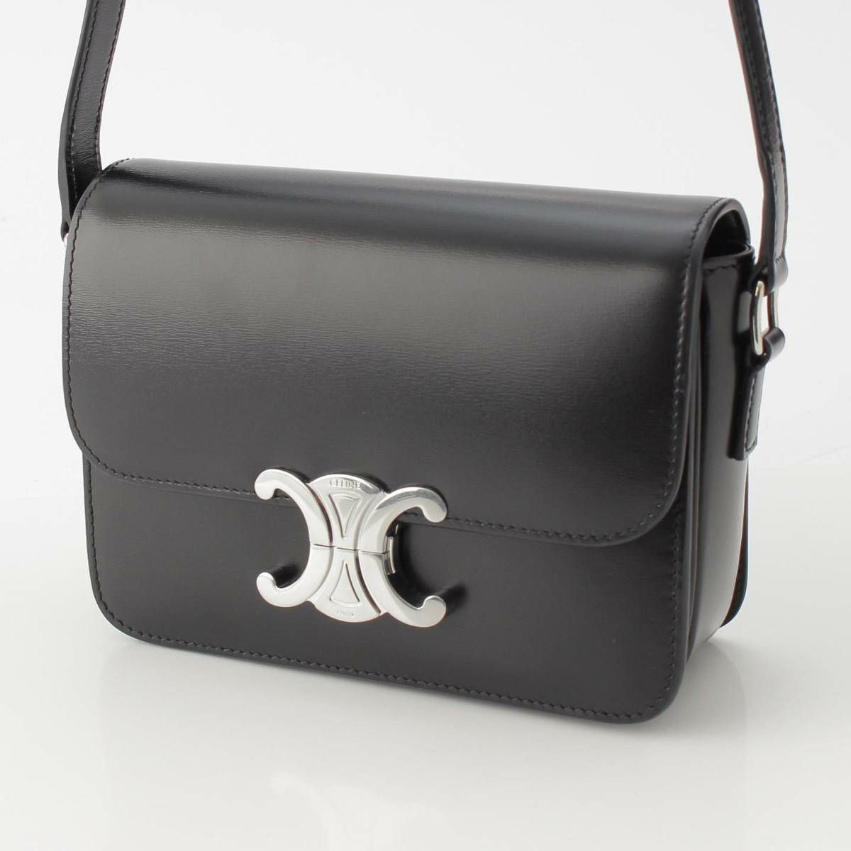 セリーヌ トリオンフ シャイニーカーフ ショルダーバッグ 188423BF4.38SI ブラック シルバー