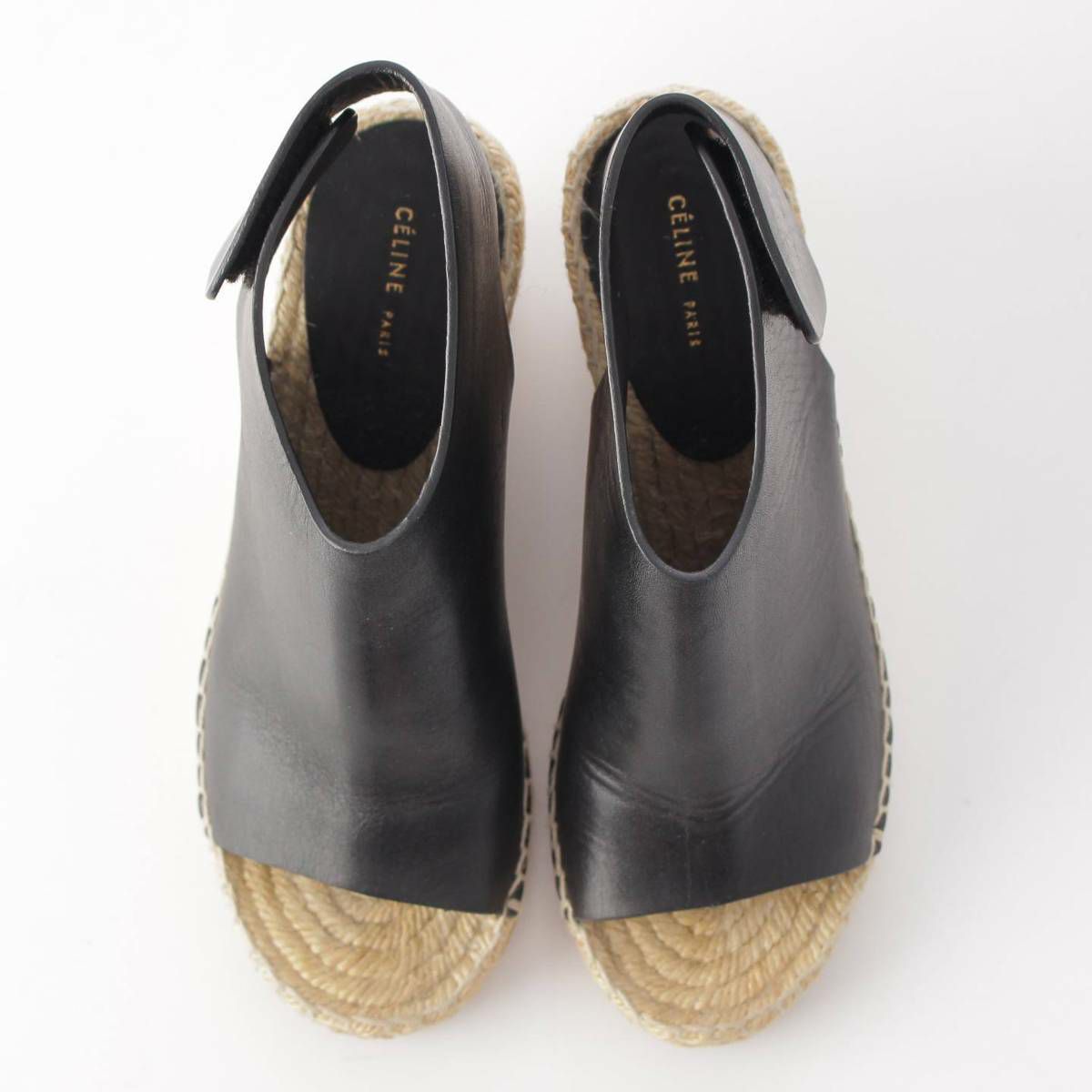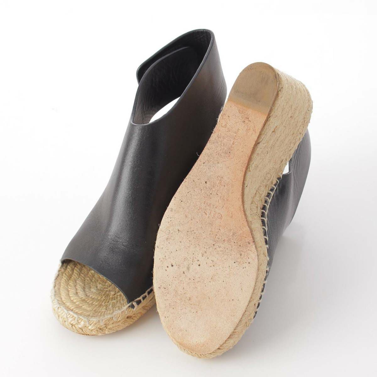 セリーヌ フィービー期 エスパドリーユ ウェッジソール レザー サンダル ブラック 35