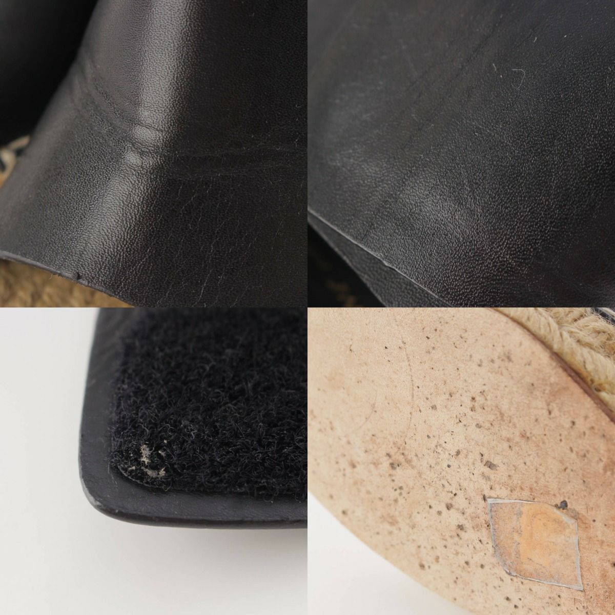 レザー地全体にシワ、ウェッジソールに所々ボンドシミあり