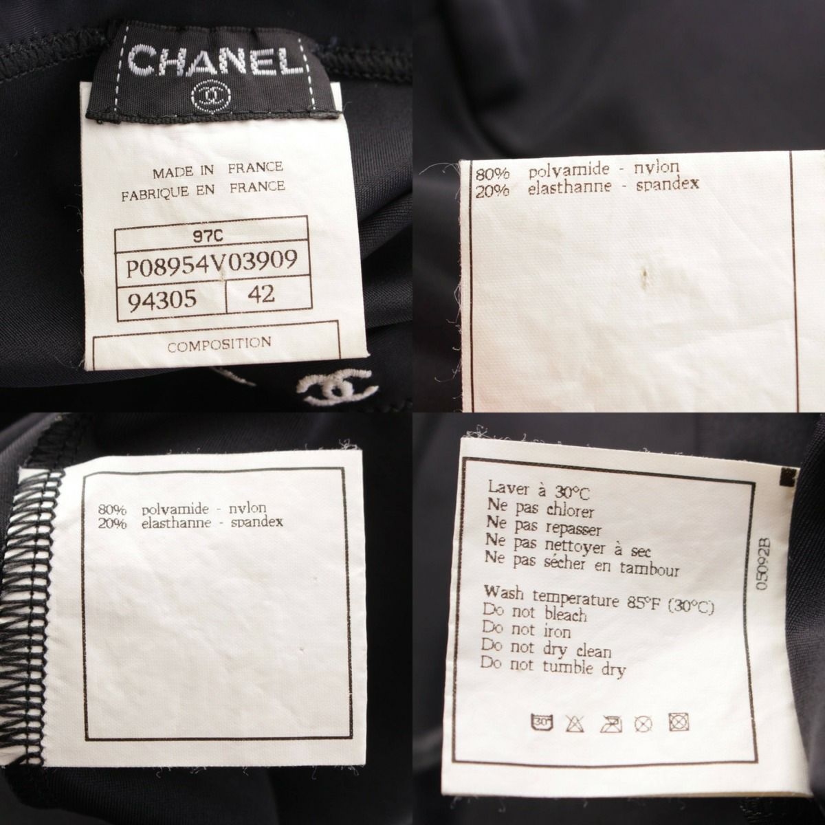 シャネル 97C ココマーク マイヨ素材 ナイロン 半袖 トップス カットソー P08954 ブラック 42