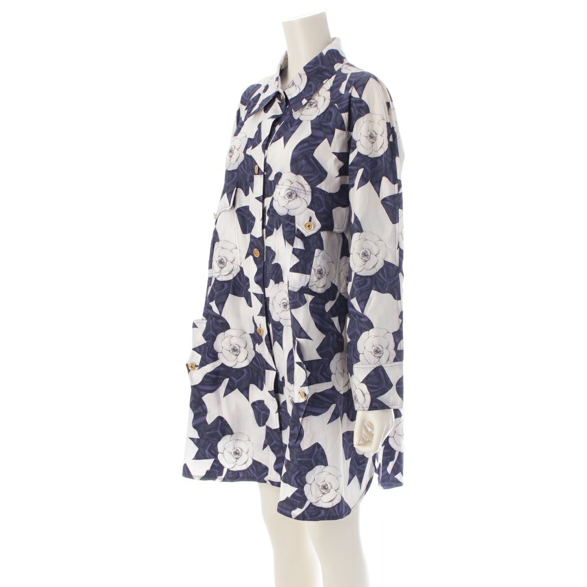 シャネル 1987年 80S ヴィンテージ カメリア リボン 長袖シャツ ジャケット ブラック ホワイト