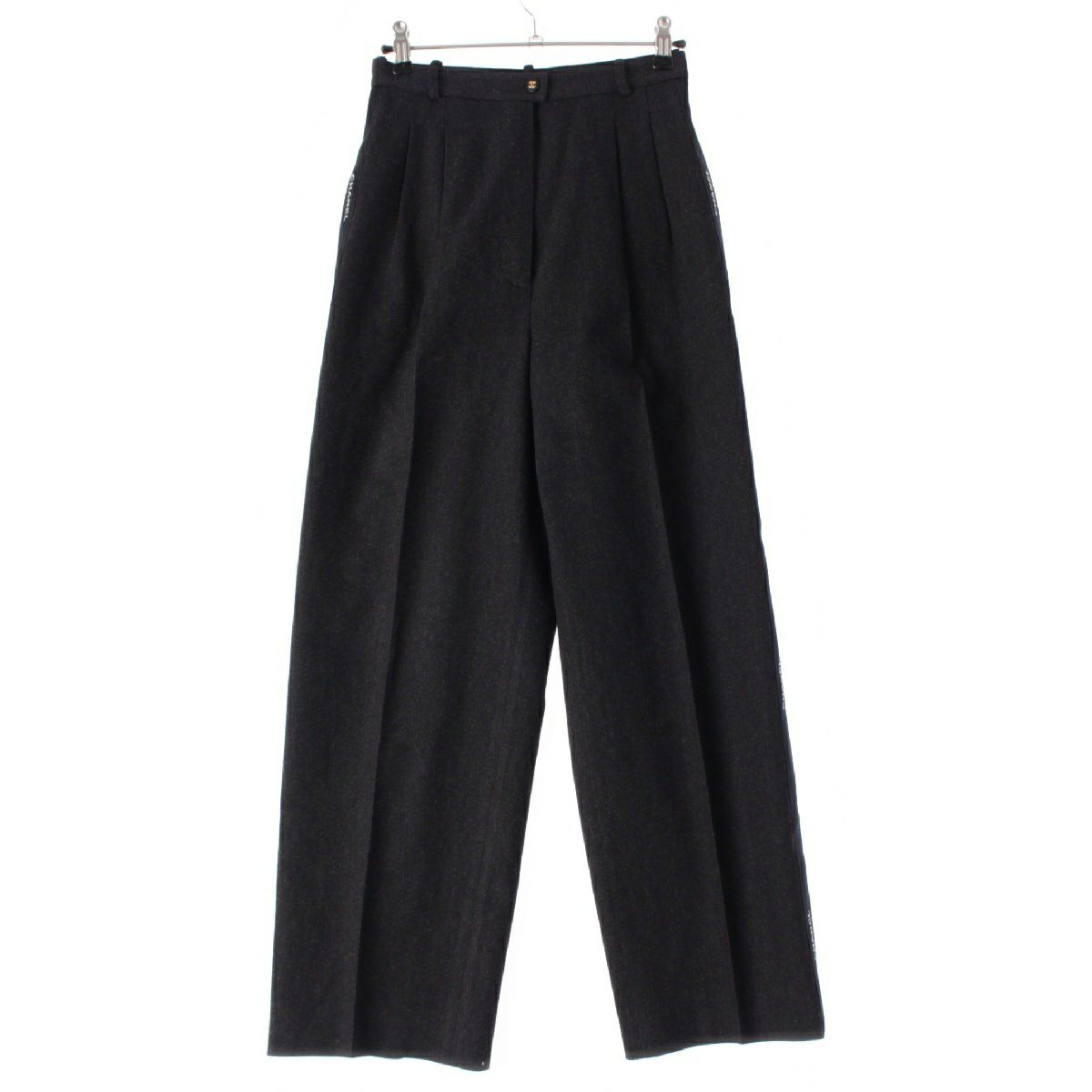 シャネル ウール サイド ライン ロゴ ココマークボタン 紙タグ パンツ スラックス トラウザーズ P05760 グレー 36