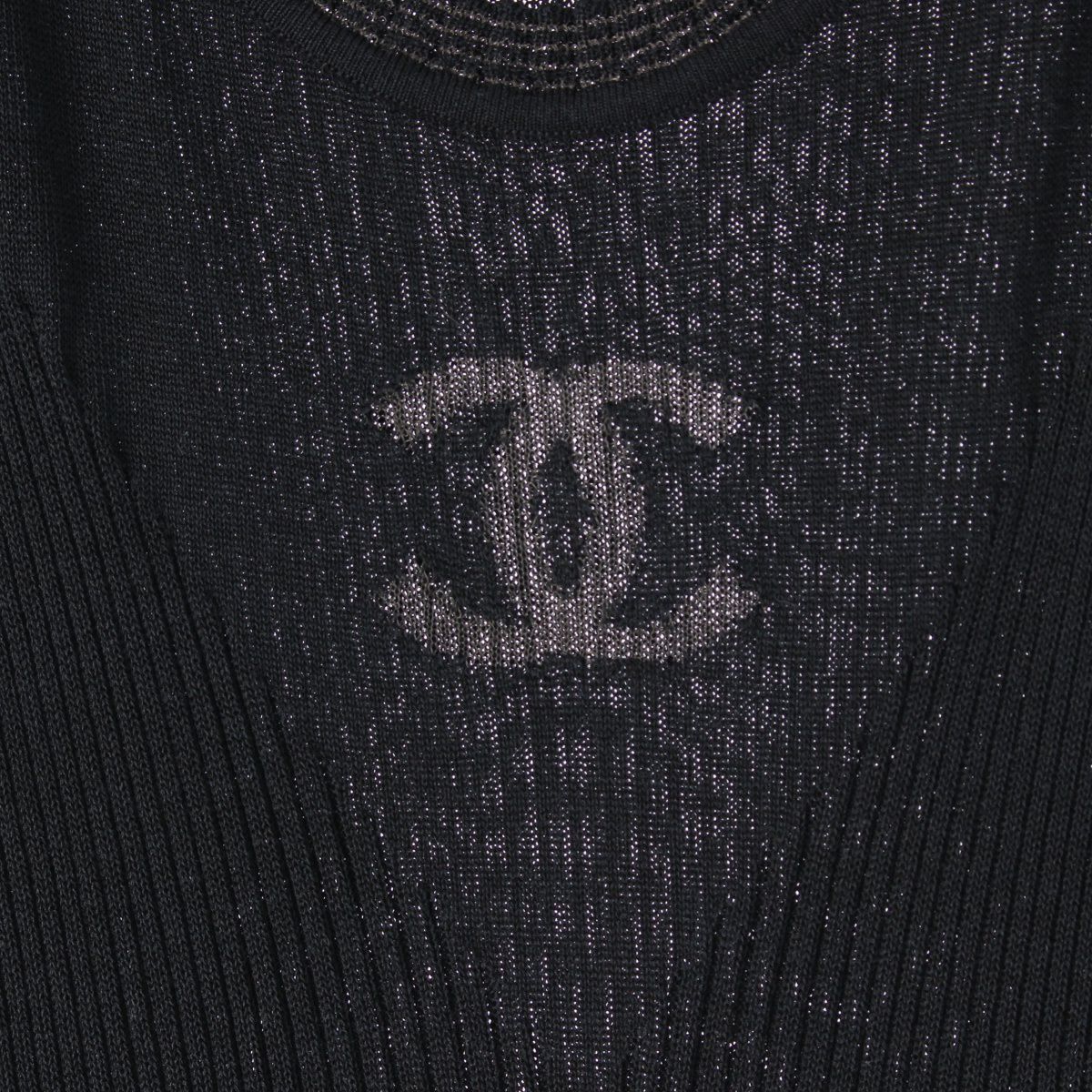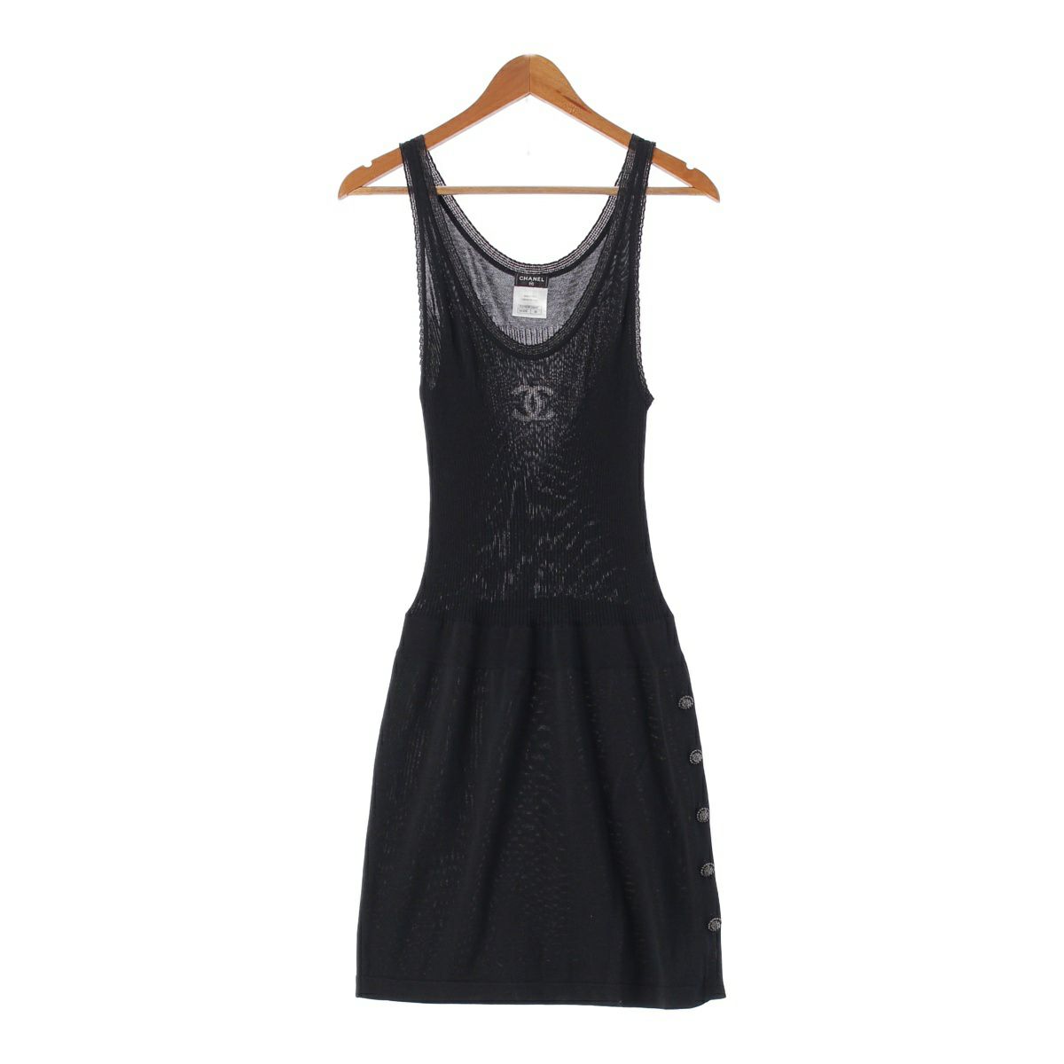 シャネル 10年 コットン シルク ココマーク リブニット ライオンボタン ワンピース ノースリーブ タンクトップ P37893 ブラック 38