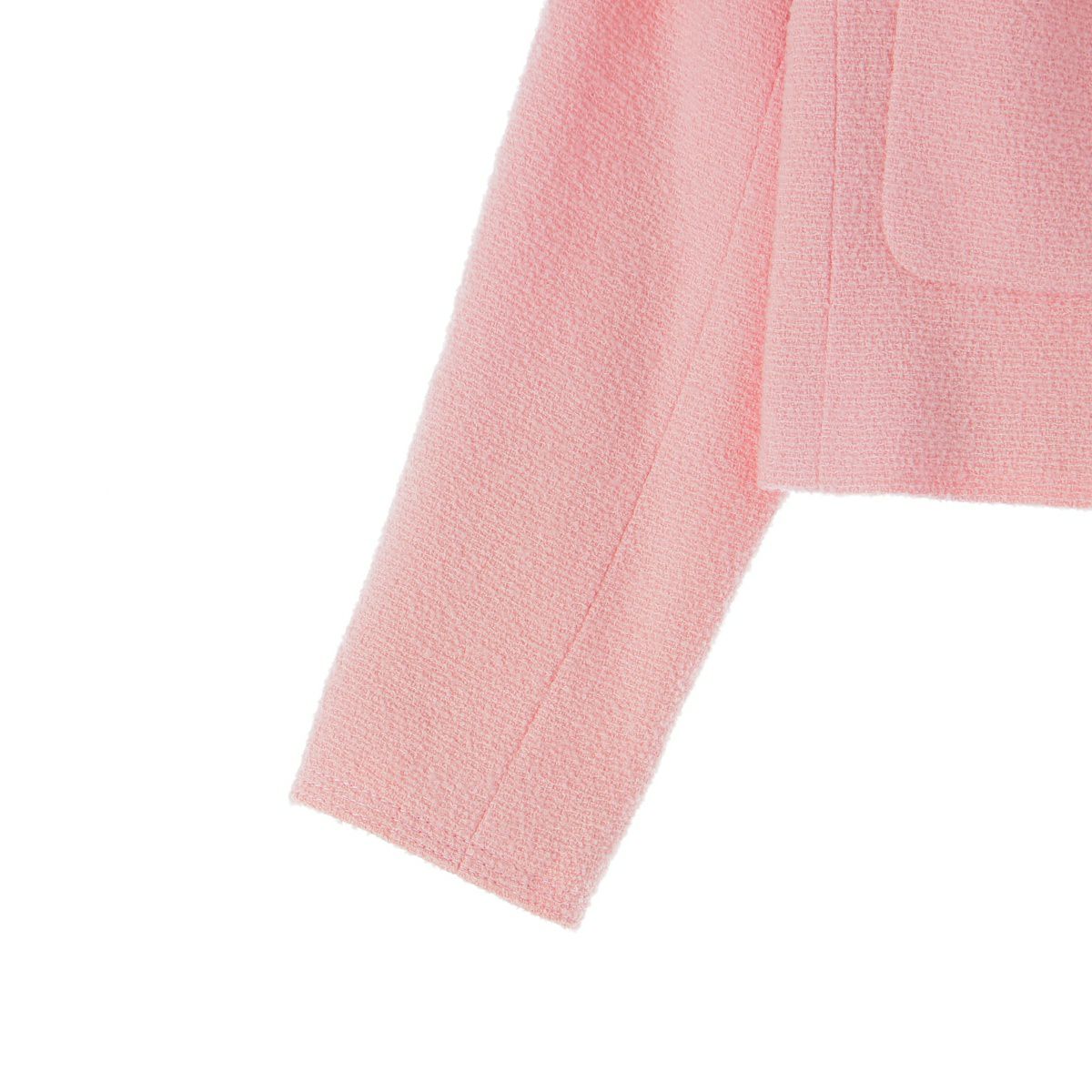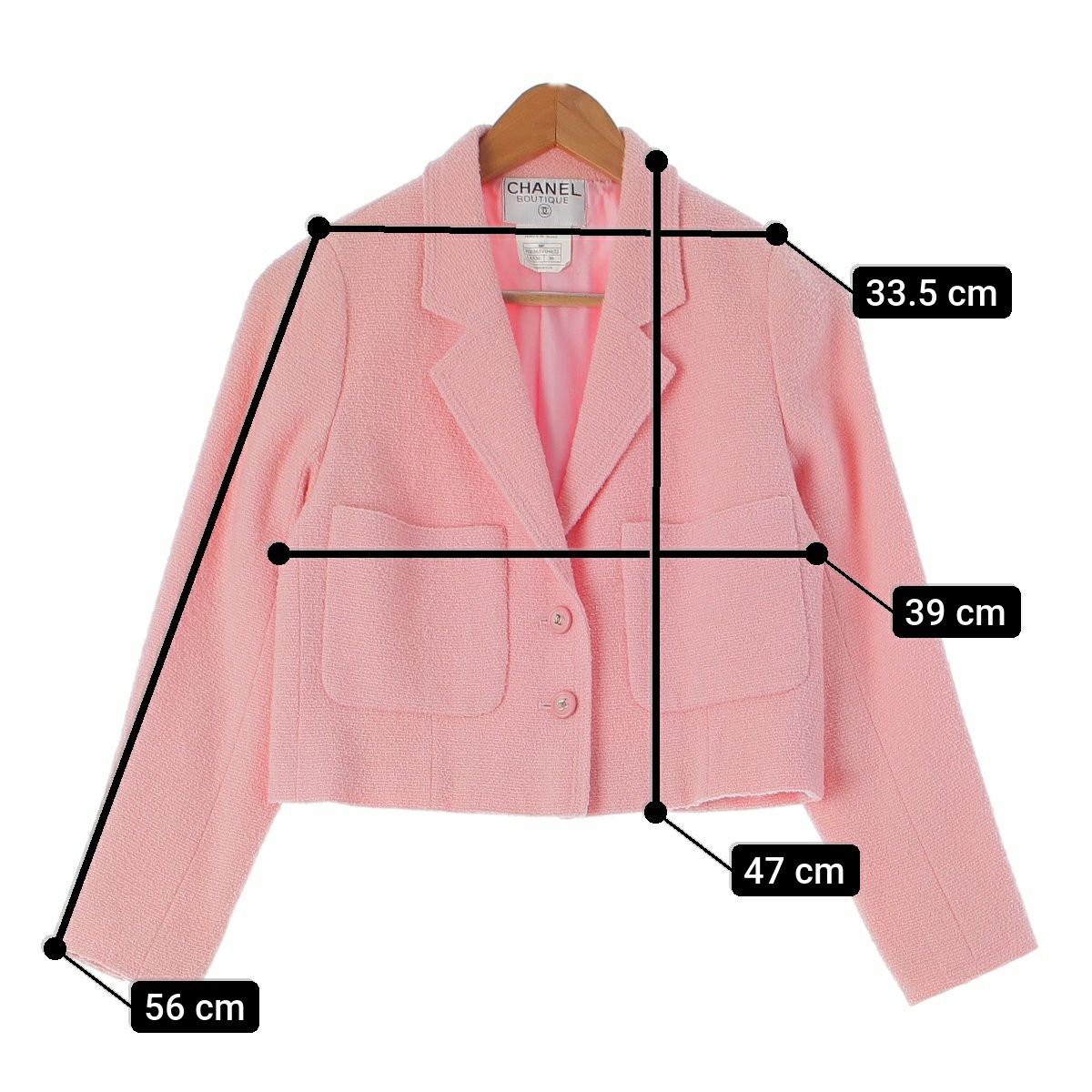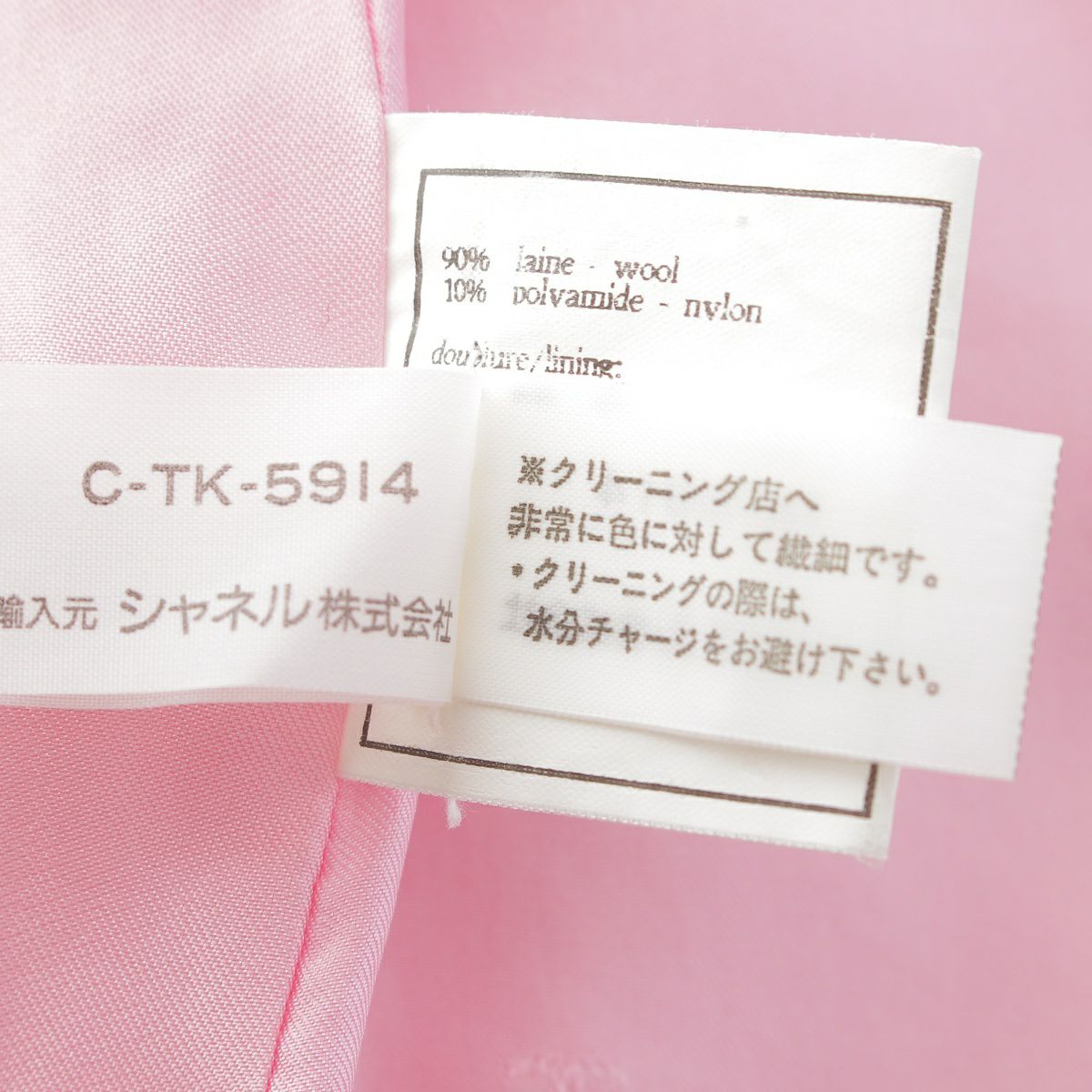 シャネル 1996年 ツイード ウール ココマークボタン チェーン ショート丈 テーラードジャケット トップス P06565 ピンク 36