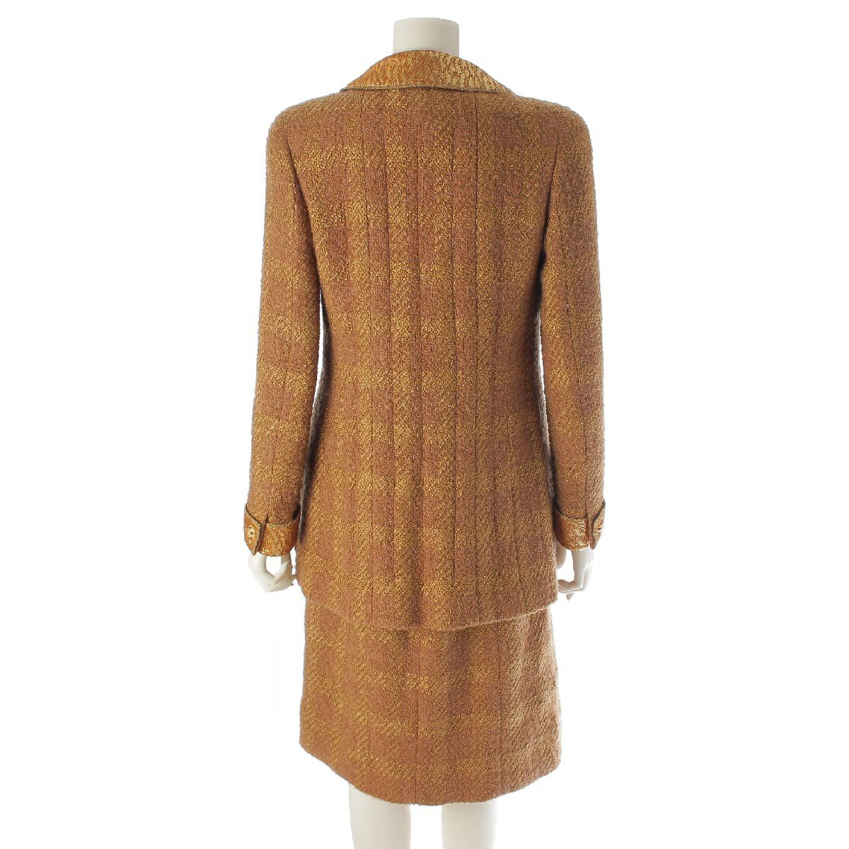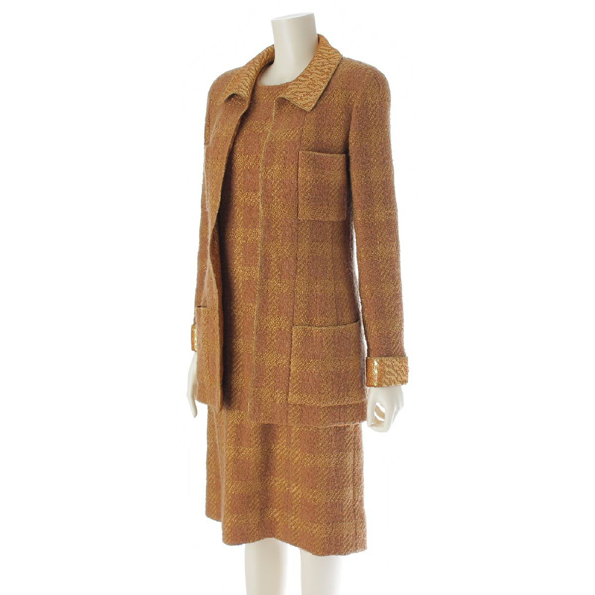 シャネル 96A ウール ナイロン グリポア ツイード ジャケット ワンピースセットアップ P08529 ブラウン 38