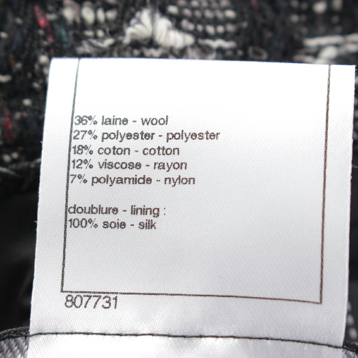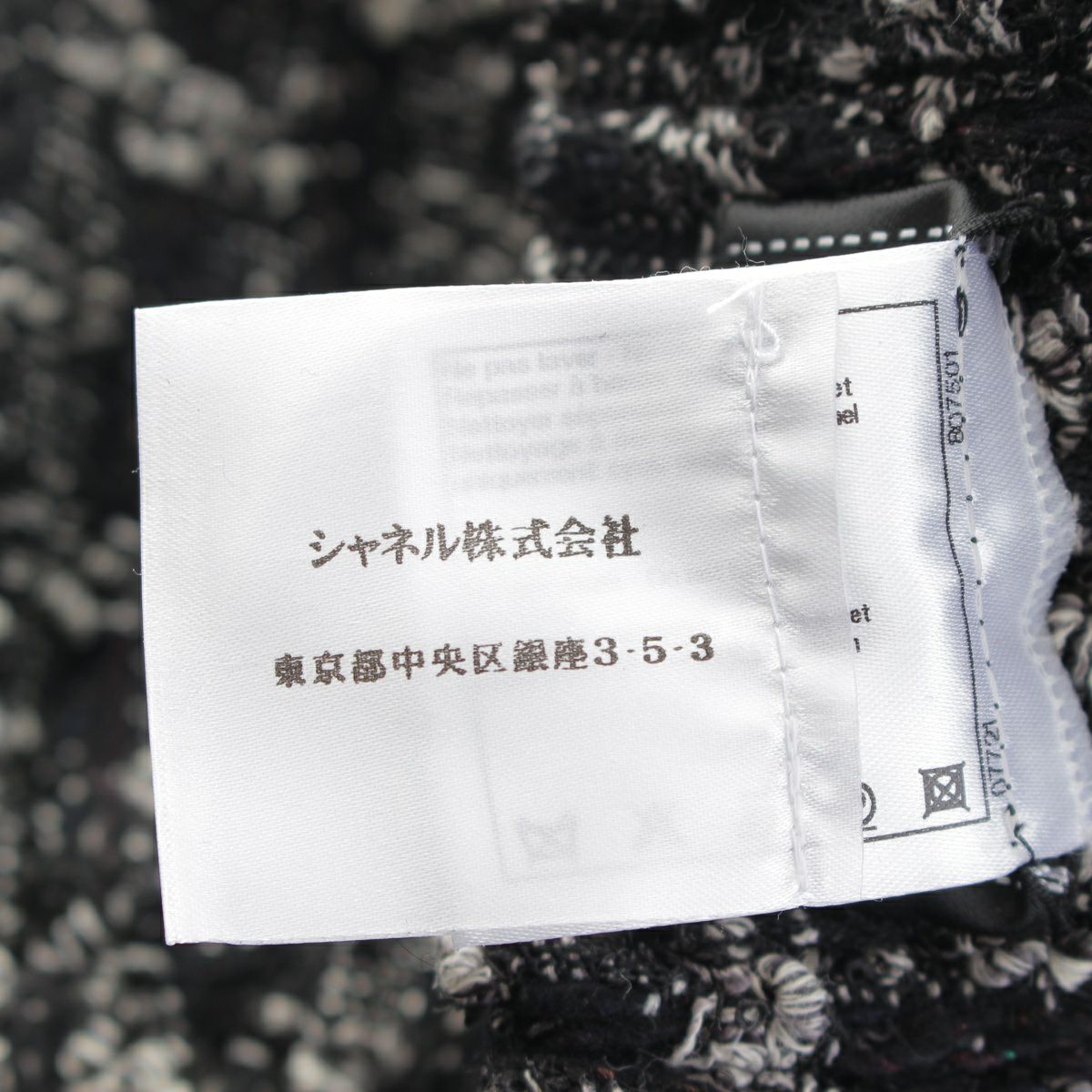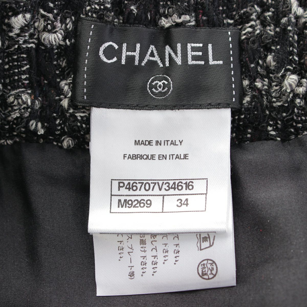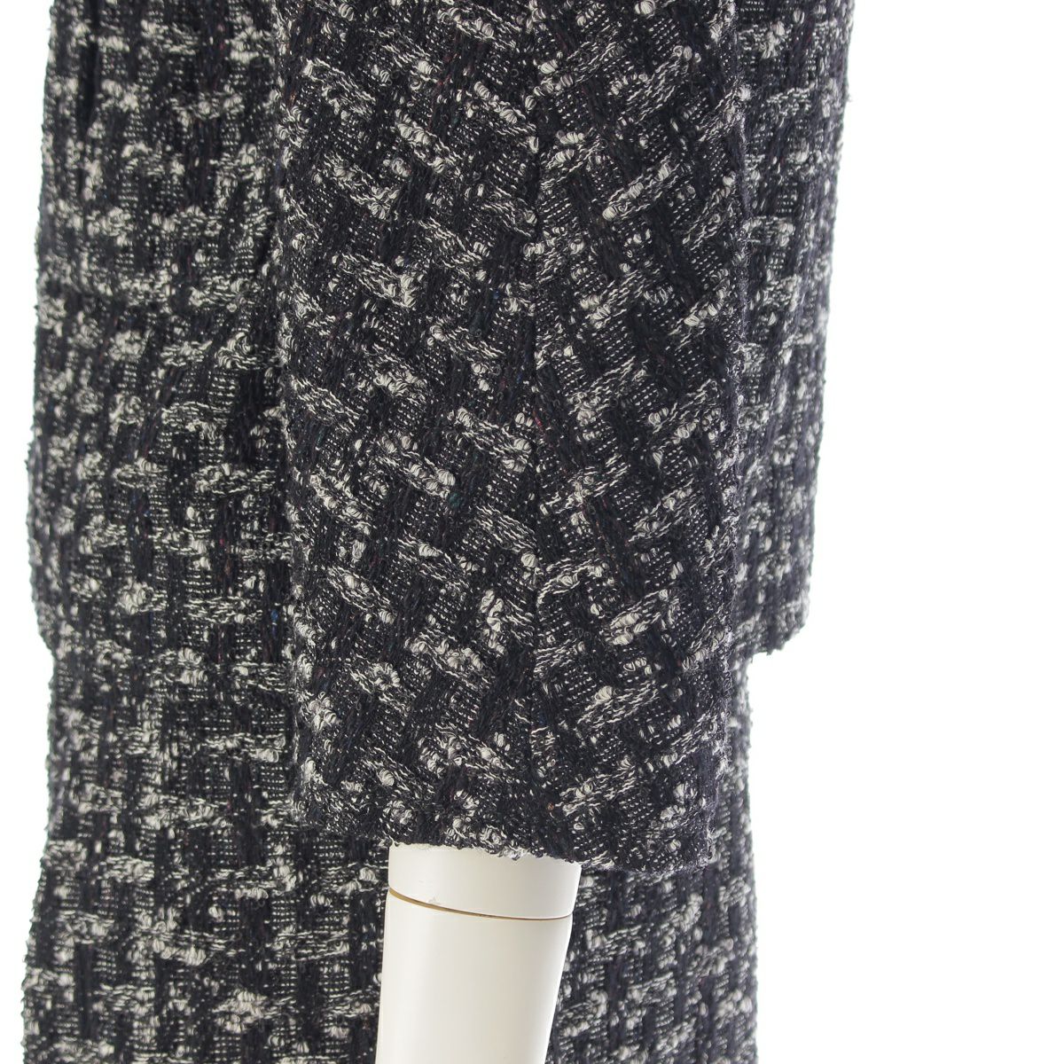 シャネル ウール ツイード ジップアップ ジャケット プリーツ スカートセットアップ ノーカラー 7分袖 ミニ丈 P46659/P46707 ブラック 34
