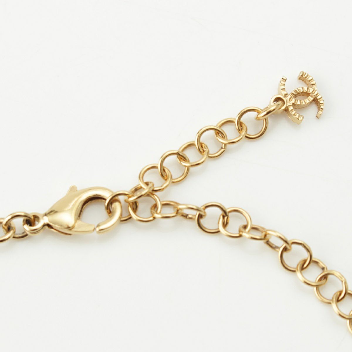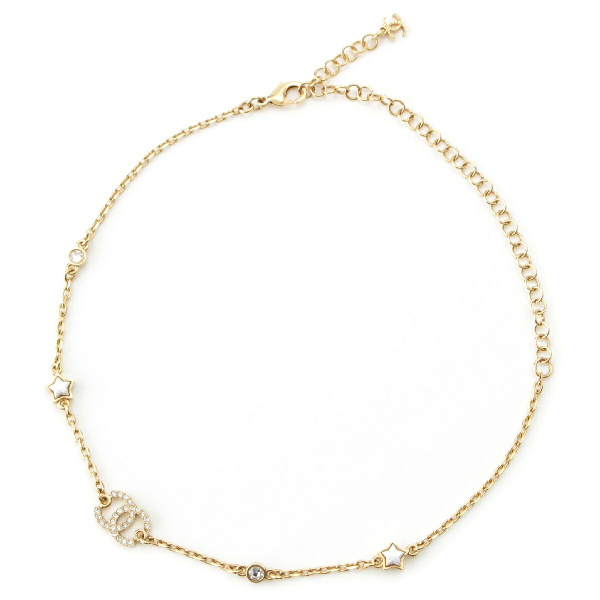 シャネル B24C ココマーク ラインストーン Fパール チェーン ネックレス ペンダント アクセサリー ゴールド