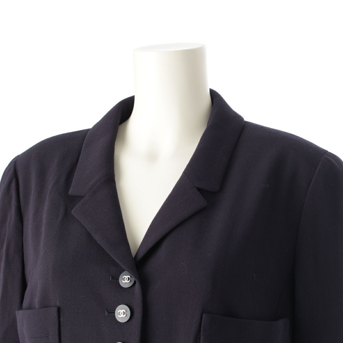 シャネル 96P ウール ヴィンテージ ココボタン 4ポケット シングル ジャケット P06370 ネイビー 44