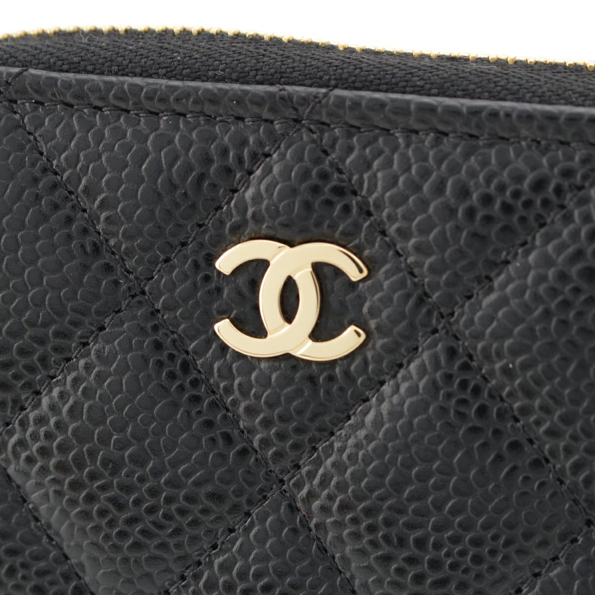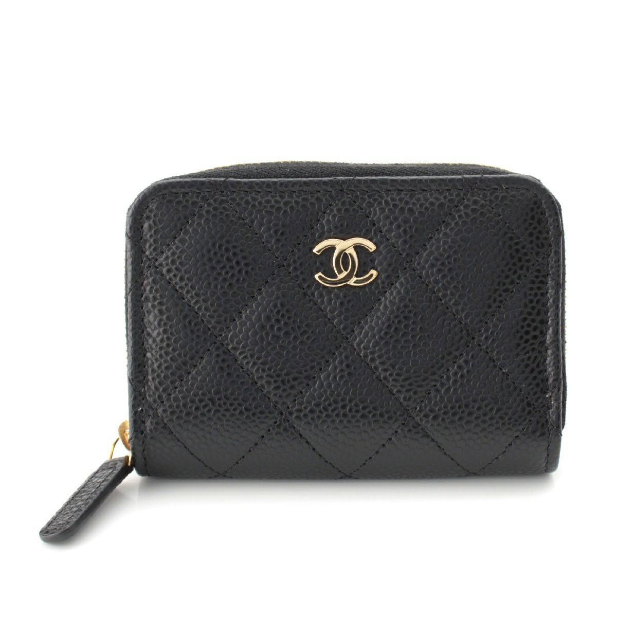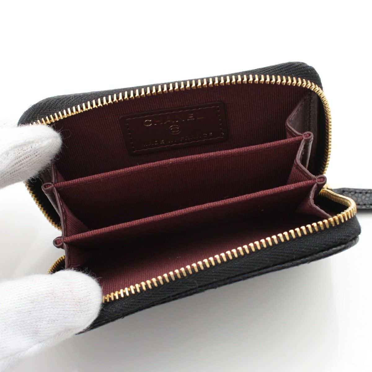 シャネル キャビアスキン マトラッセ ラウンドジップ ゴールド金具 小銭入れ コインケース ブラック