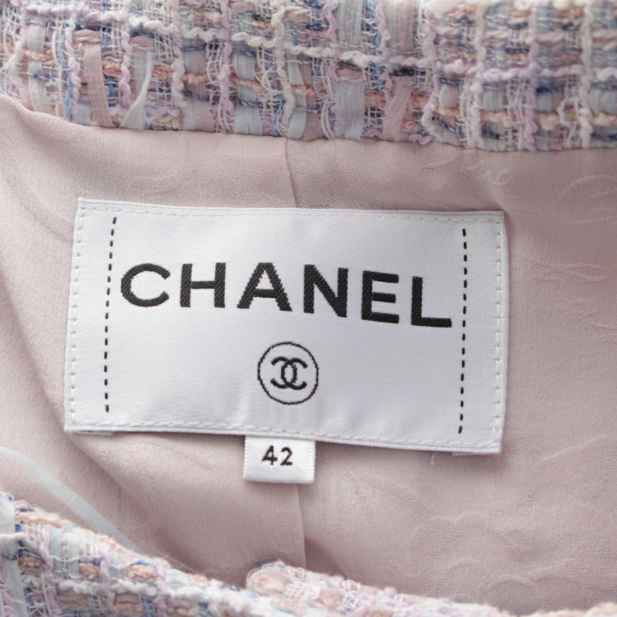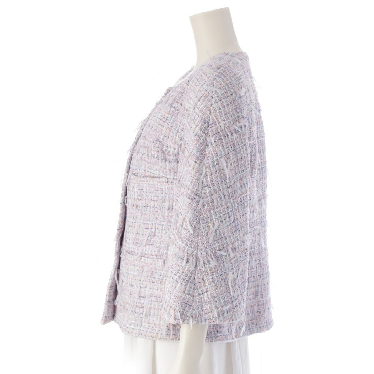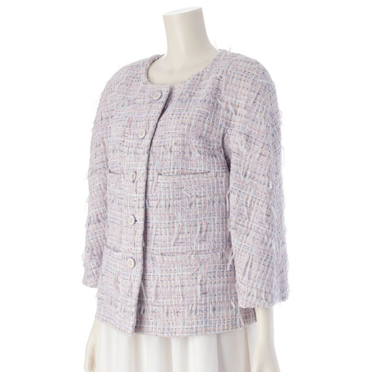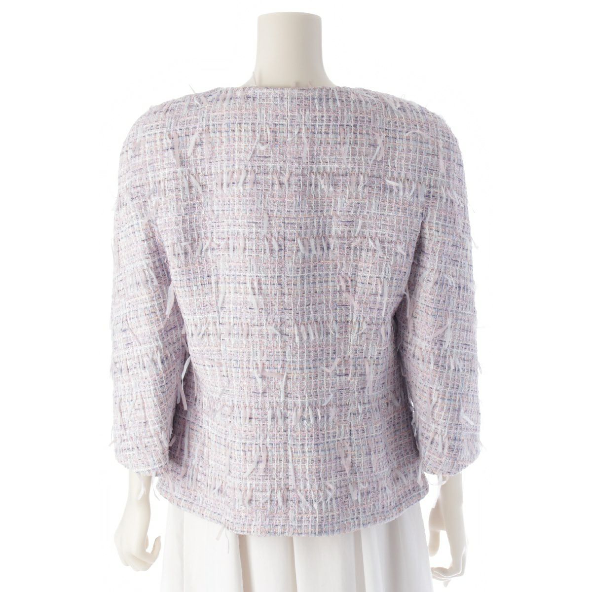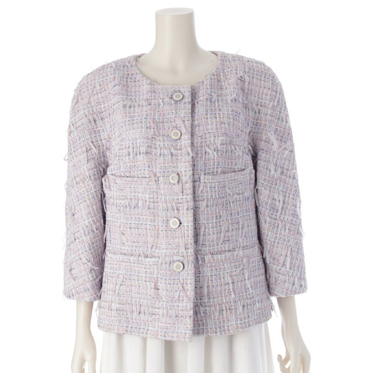シャネル 18年 コットン ツイード ココマークボタン カメリア裏地 4ポケット ノーカラージャケット P58339 ピンク F42