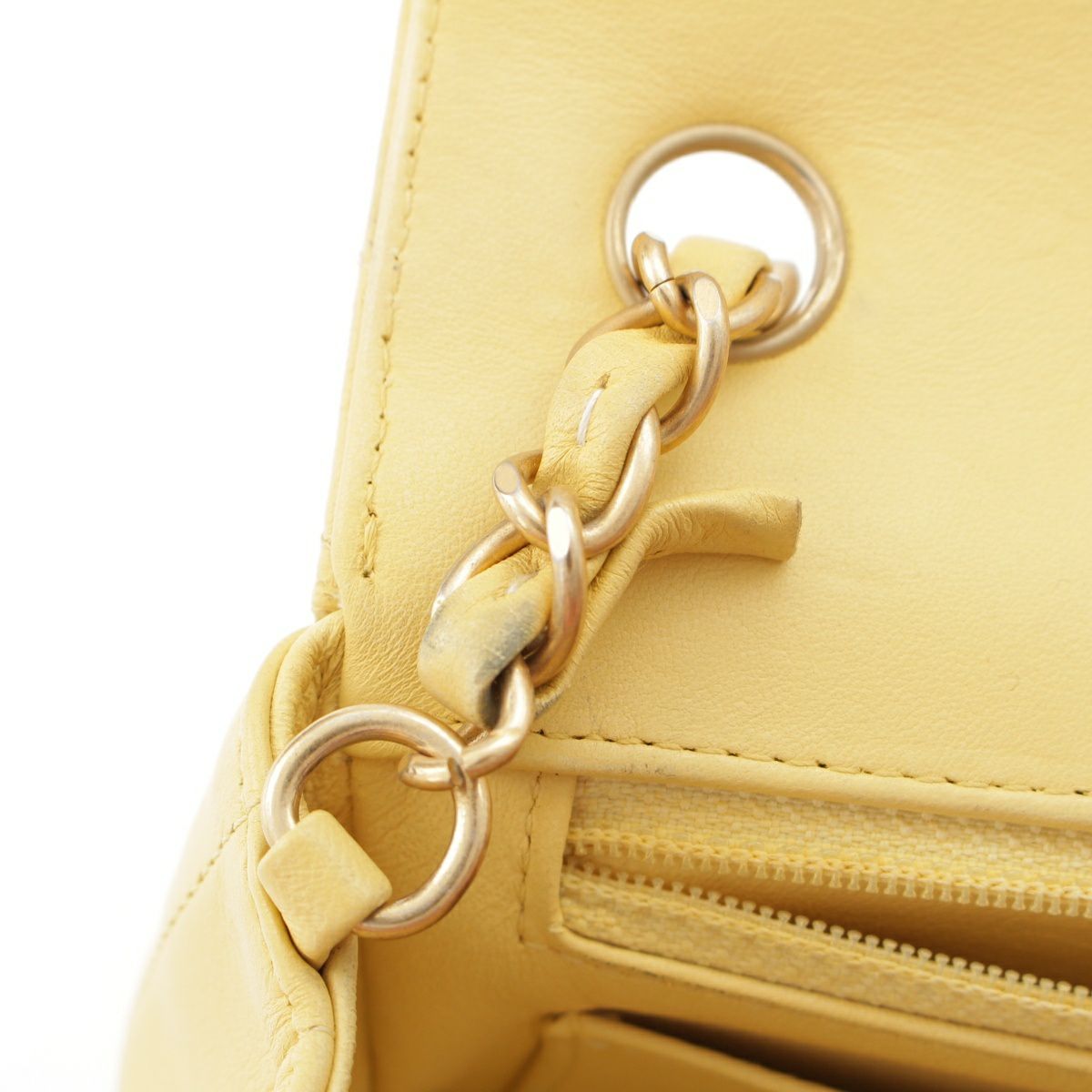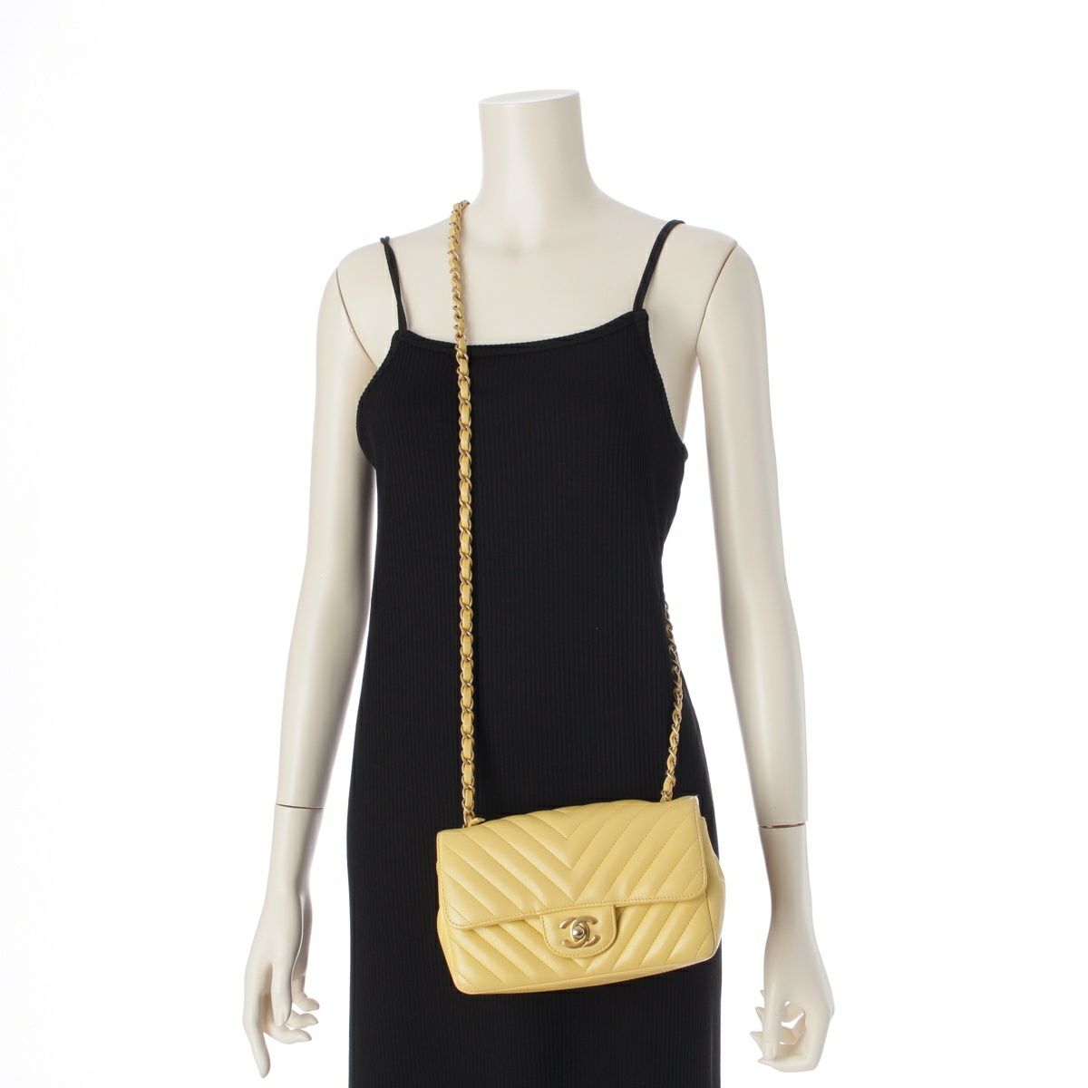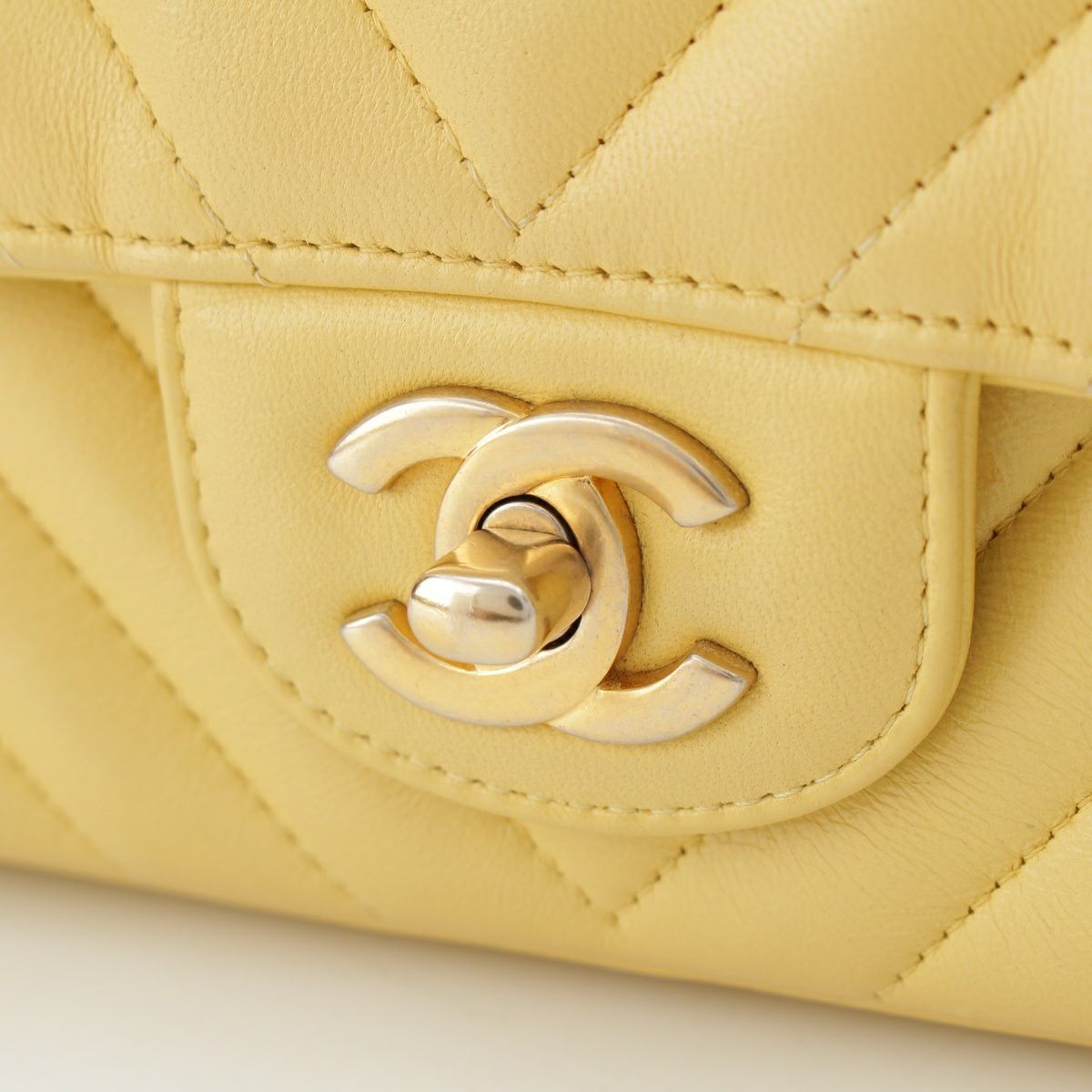 シャネル Vステッチ シェブロン ラムスキン チェーン ショルダーバッグ イエロー