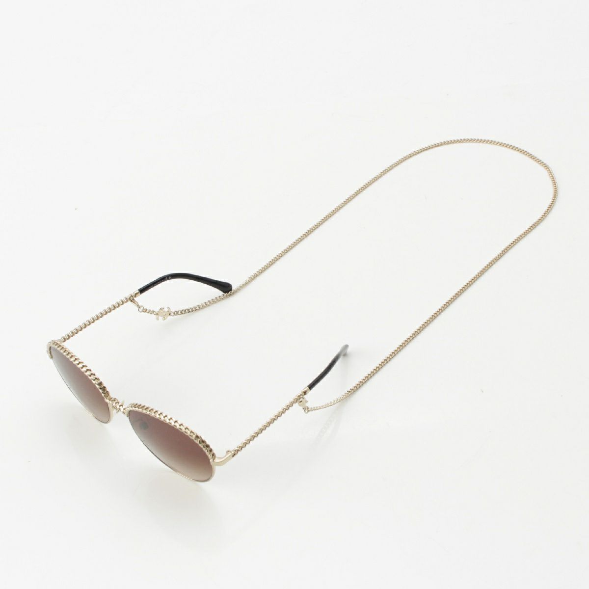 シャネル ココマーク チェーン パントシェイプ サングラス アイウェア 4242 H6921 ブラック×ゴールド 55□17