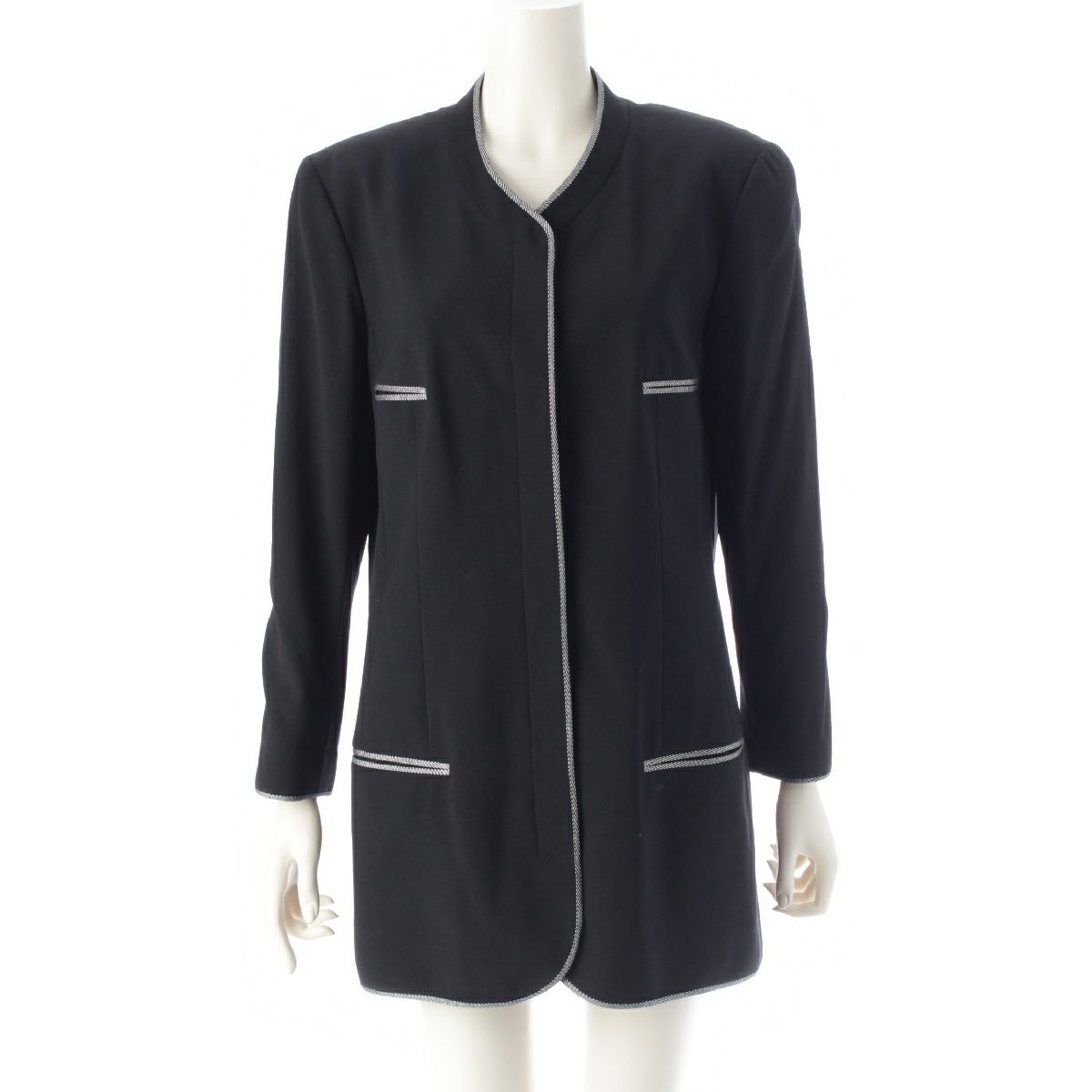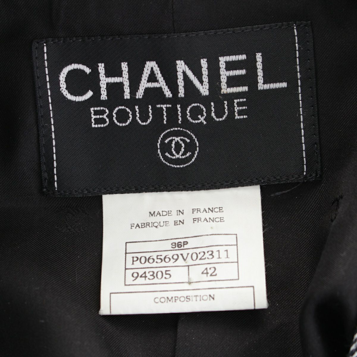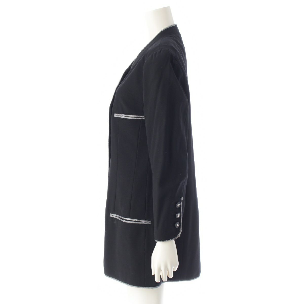 シャネル 96P ウール ココボタン ストライプ柄パイピング ジャケット アウター P06569 ブラック 42