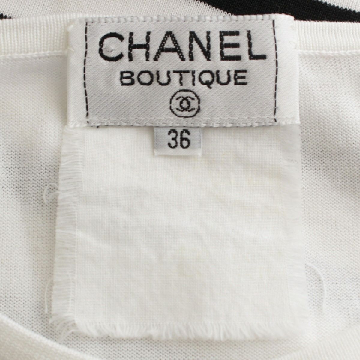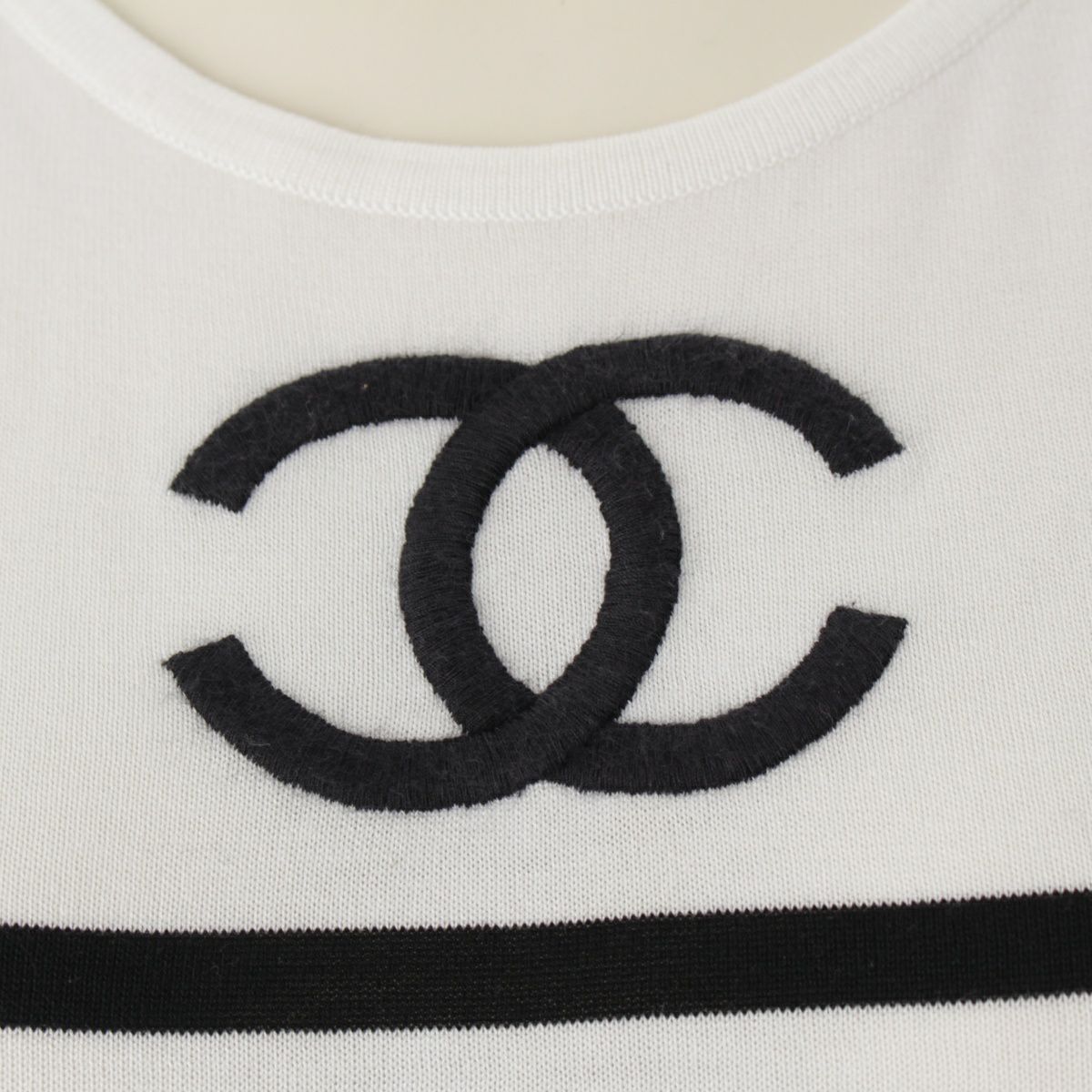 シャネル 94P ヴィンテージ ココマーク刺繍 ボーダー柄 半袖 カットソー トップス ホワイト ブラック 36