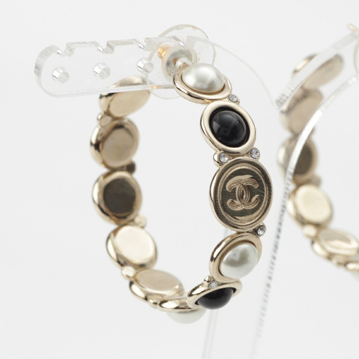 シャネル 19B ココマーク Fパール ストーン フープ ピアス イヤリング アクセサリー ゴールド