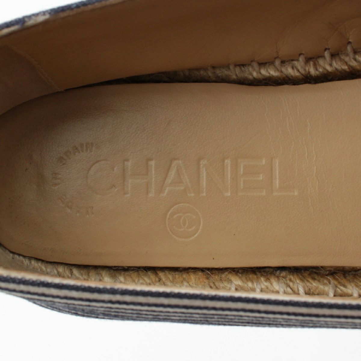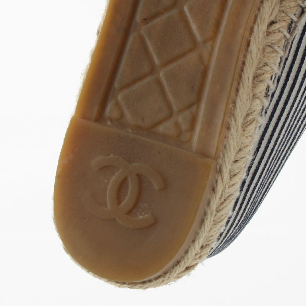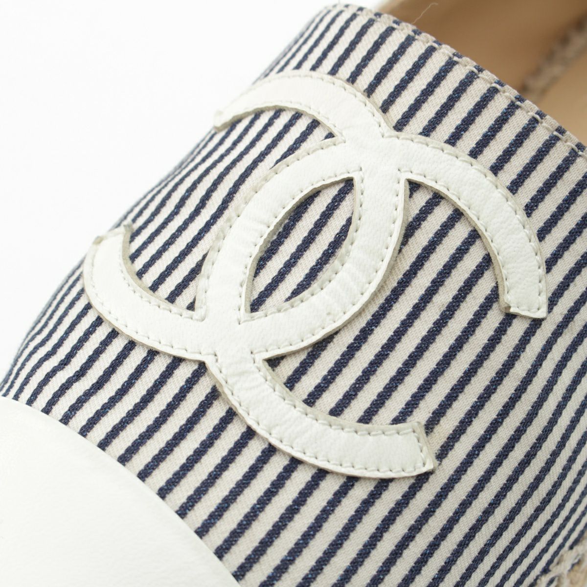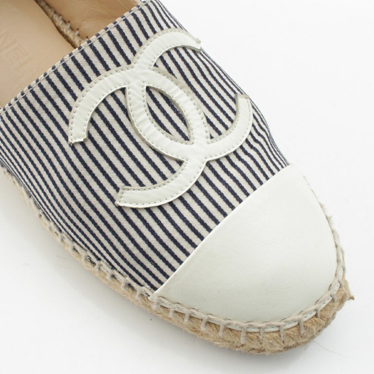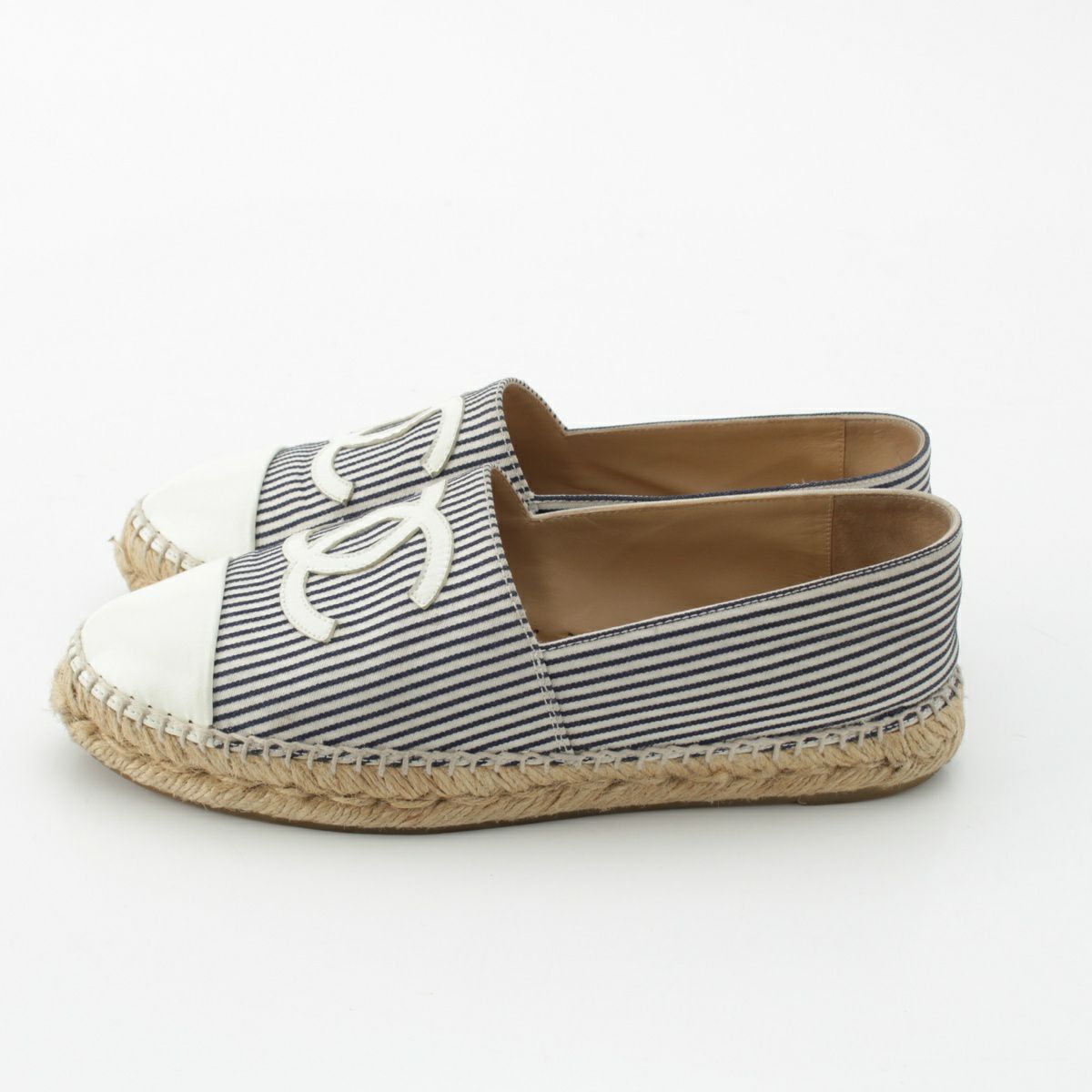 シャネル キャンバス ストライプ柄 エスパドリーユ フラット シューズ G29762 ブルー×ホワイト 38