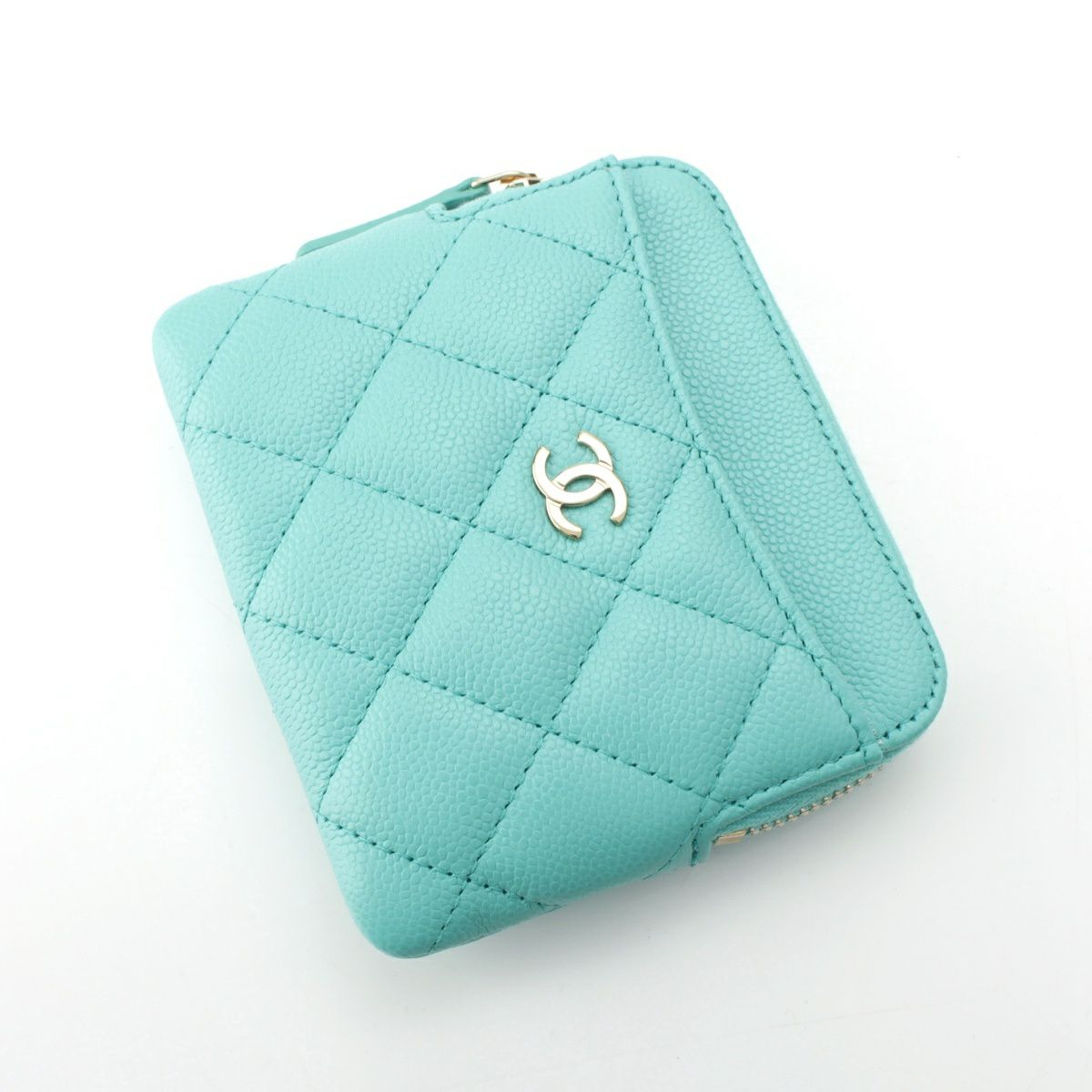 シャネル マトラッセ キャビアスキン ココマーク ラウンドジップ コインケース コンパクトウォレット グリーン ゴールド金具