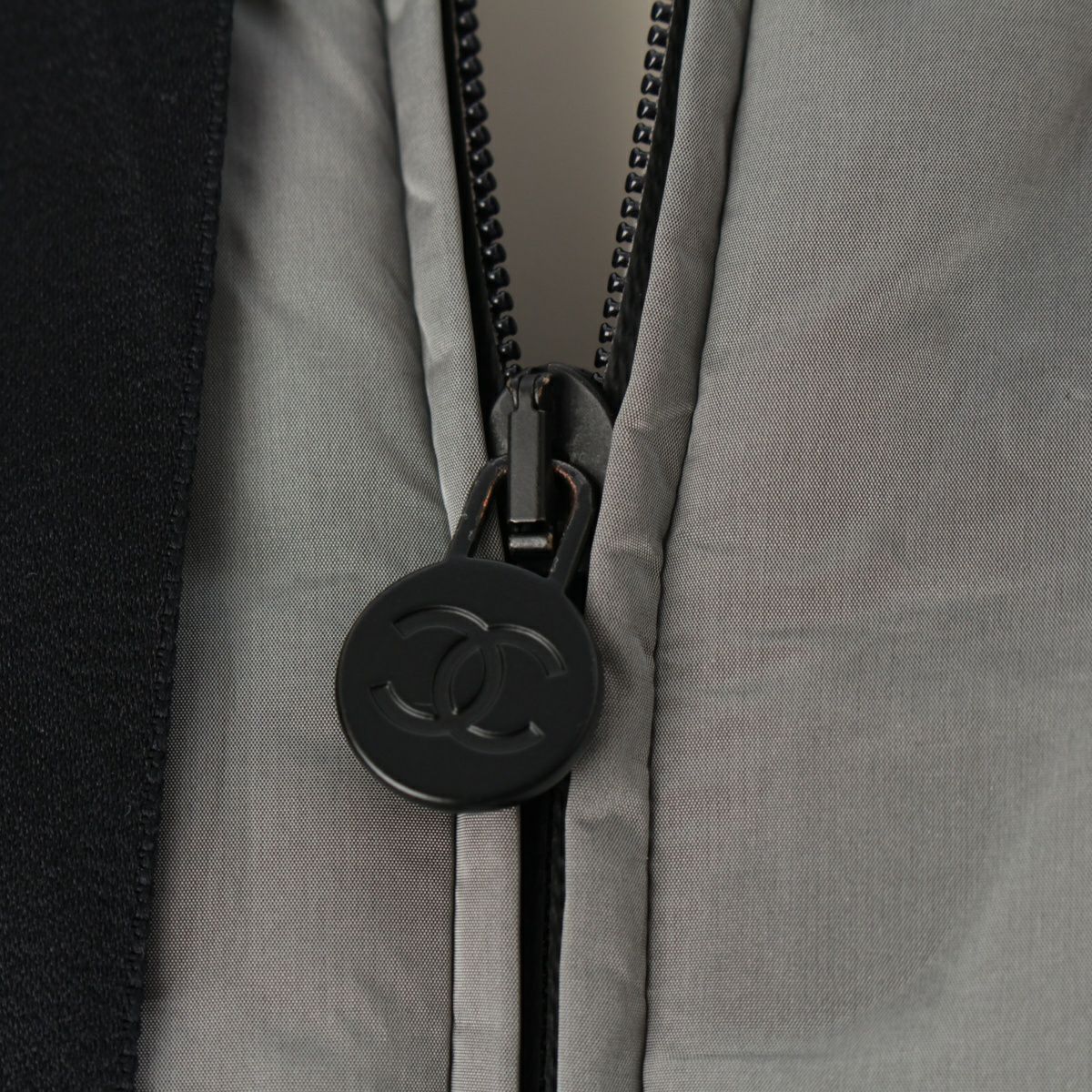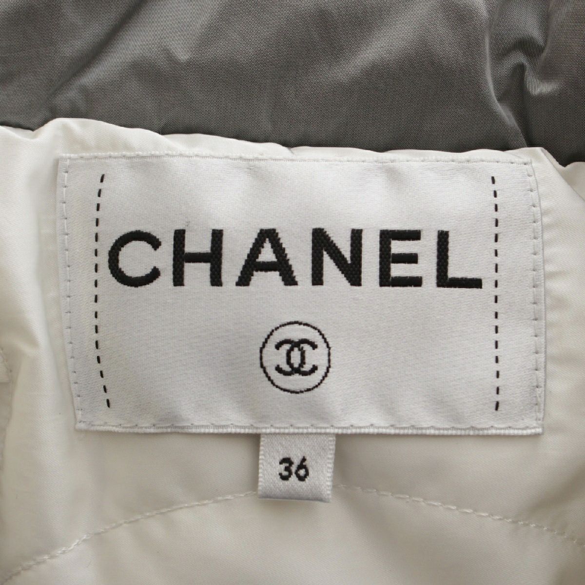 シャネル ナイロン ブラックリボン ロゴ ダウンジャケット ブルゾン アウター ライトグレー 36
