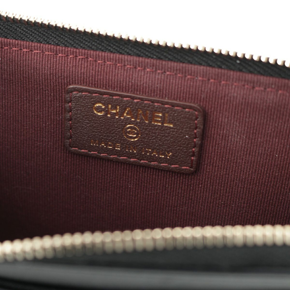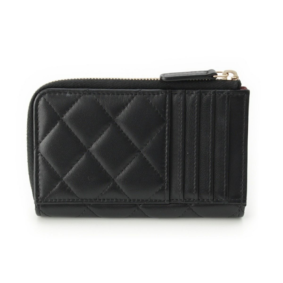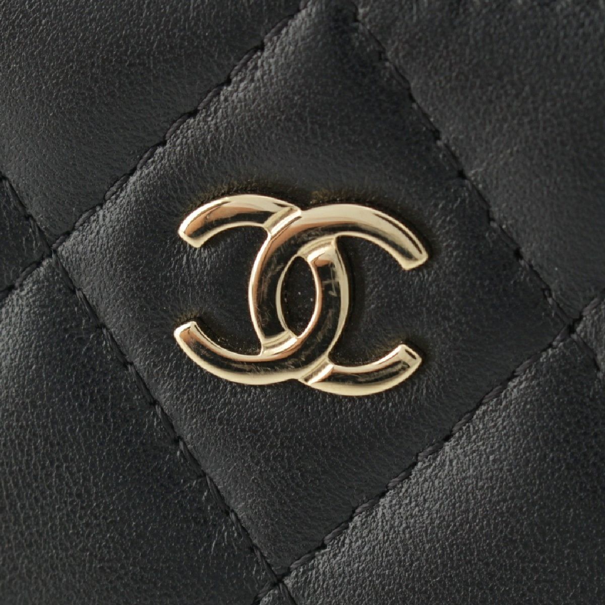 シャネル ラムスキン ココマーク マトラッセ L字ジップ フラグメント コインケース AP3179 ブラック