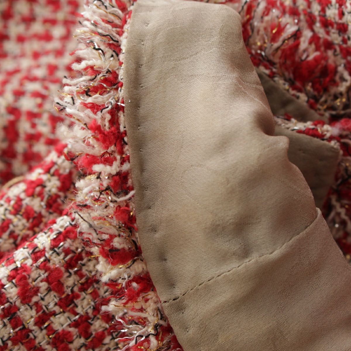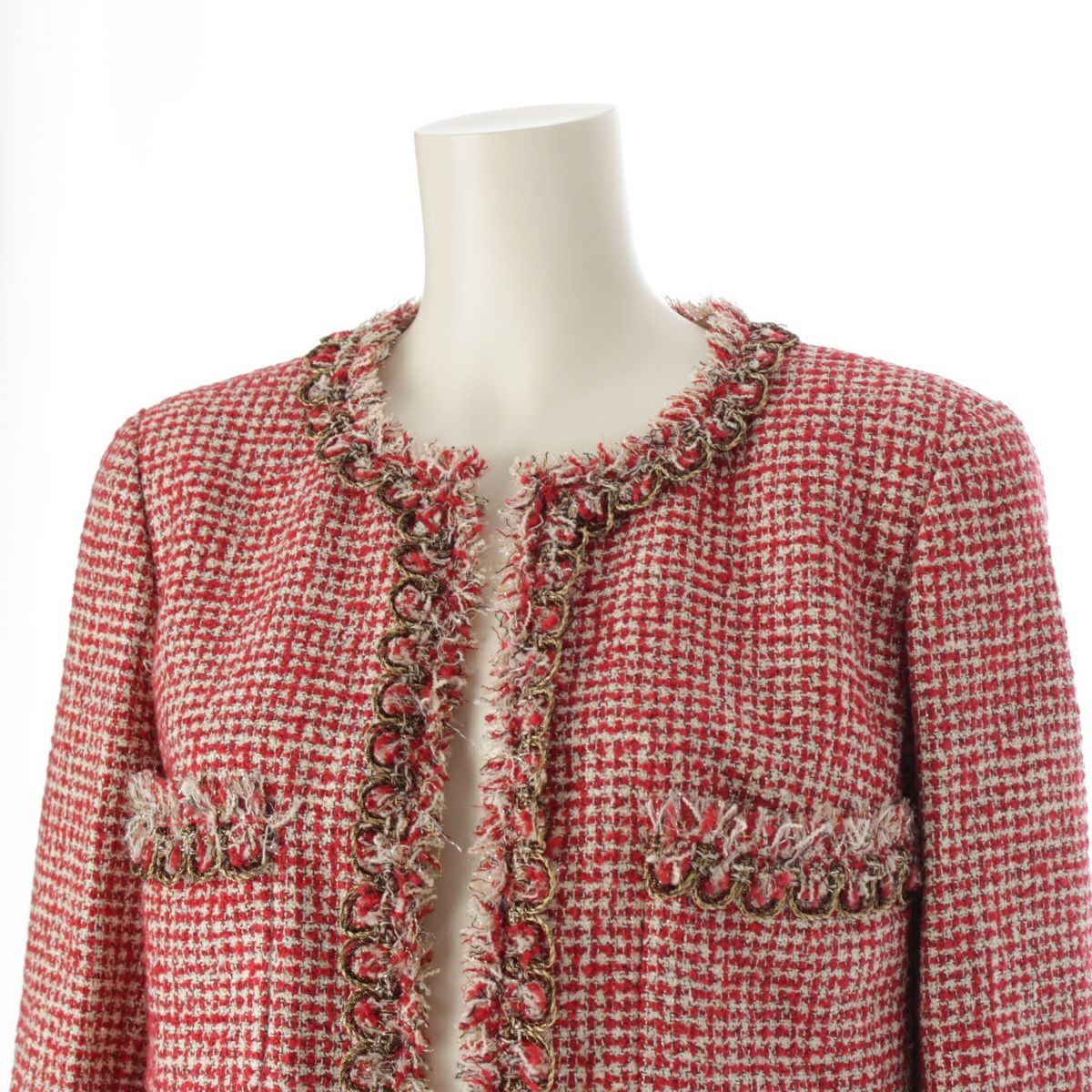 シャネル 10C ノーカラー ツイード ジャケット P37210 レッド 40