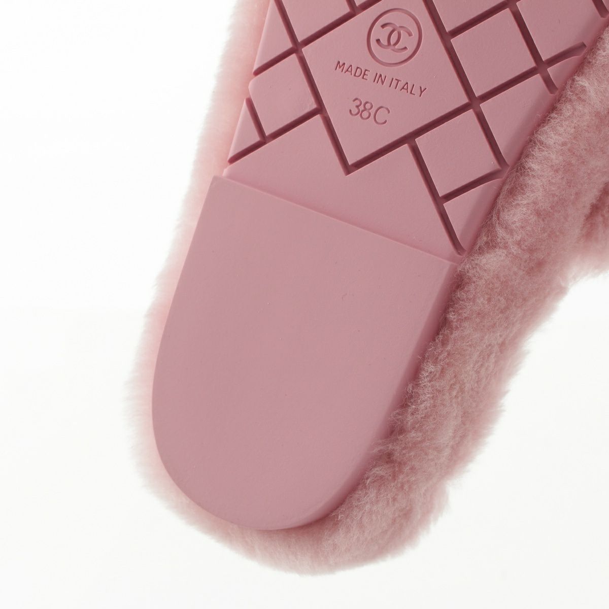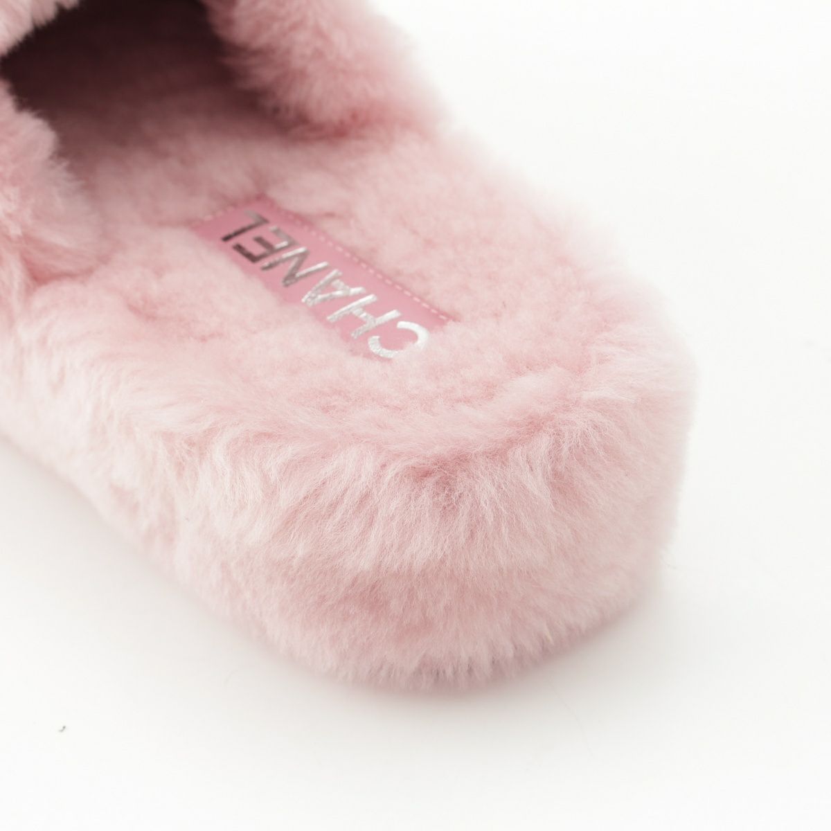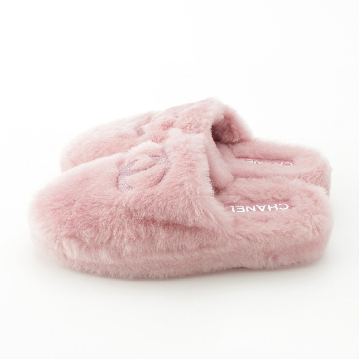 シャネル 24B ファー シアリング ココマーク刺繍 スリッパ サンダル ポーチ付き G45984 ピンク 38C