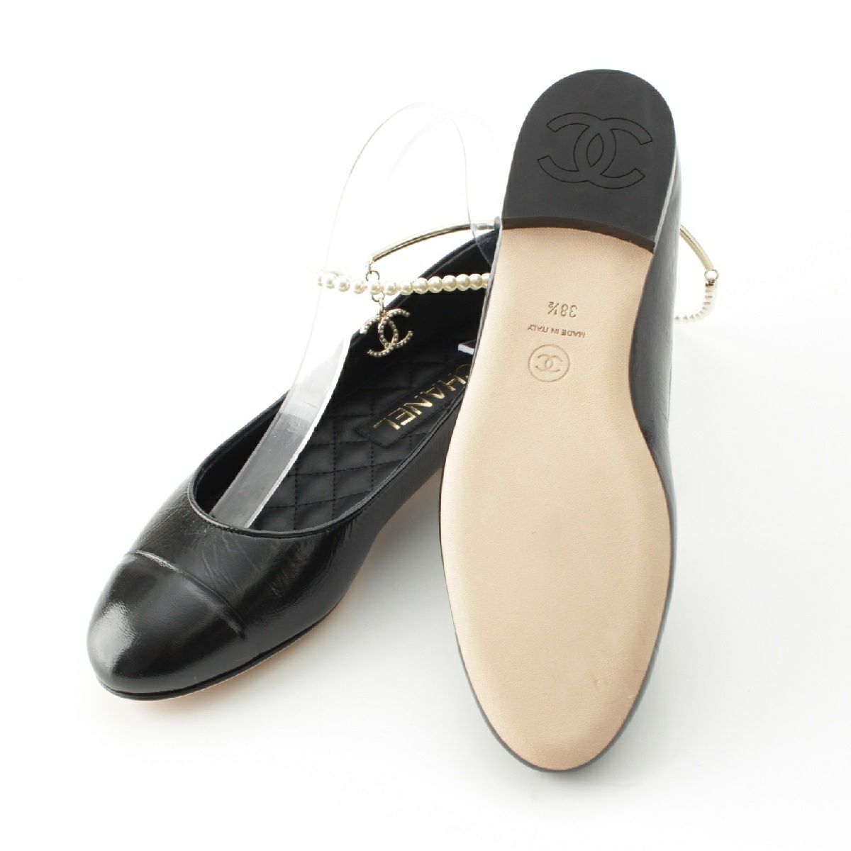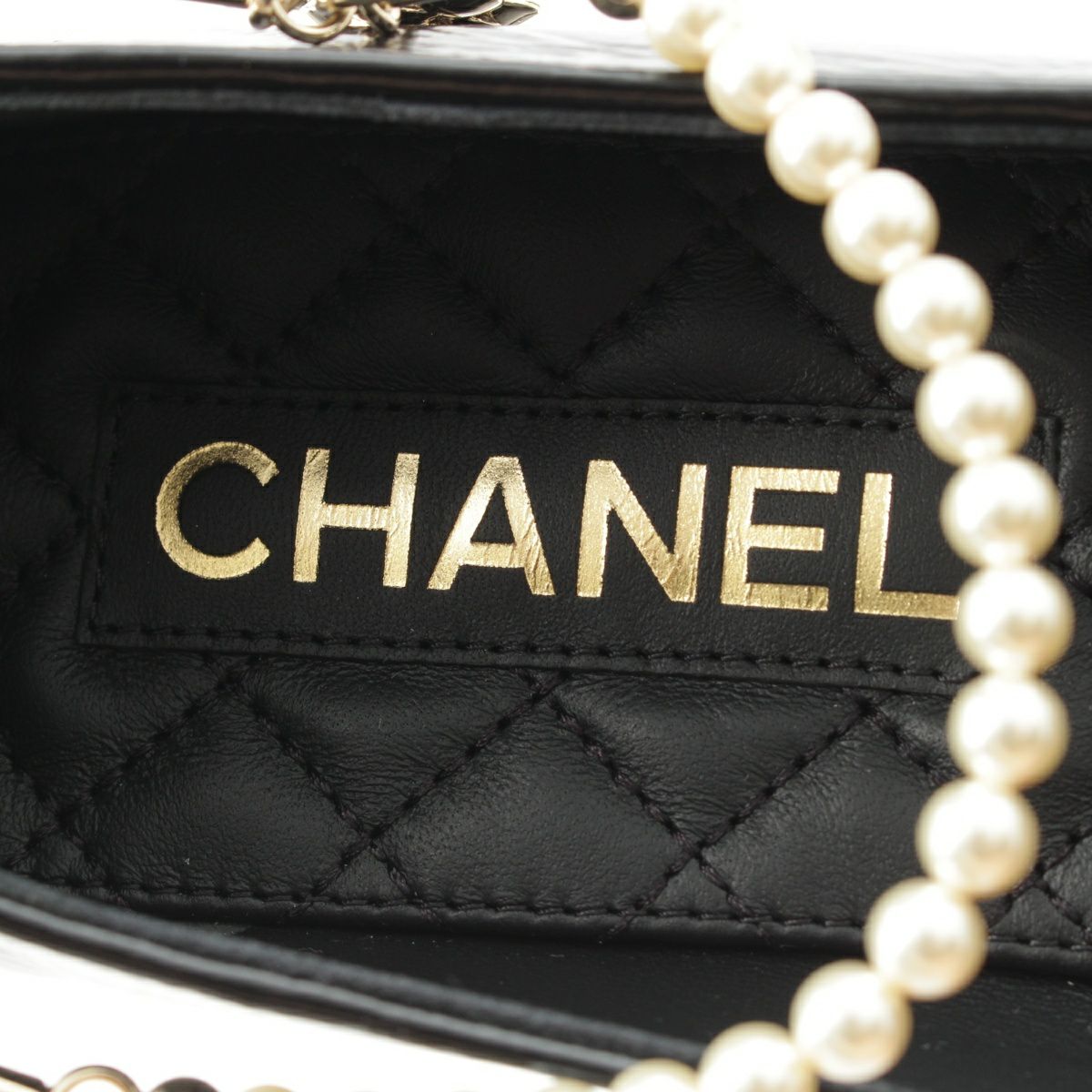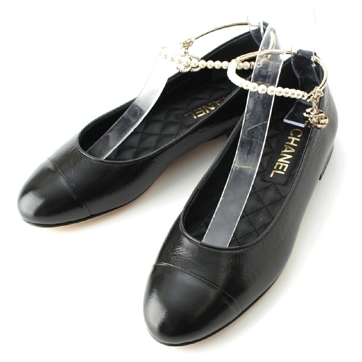 シャネル レザー ココマーク パール チェーン ストラップ バレリーナ パンプス シューズ G38986 ブラック 38.5