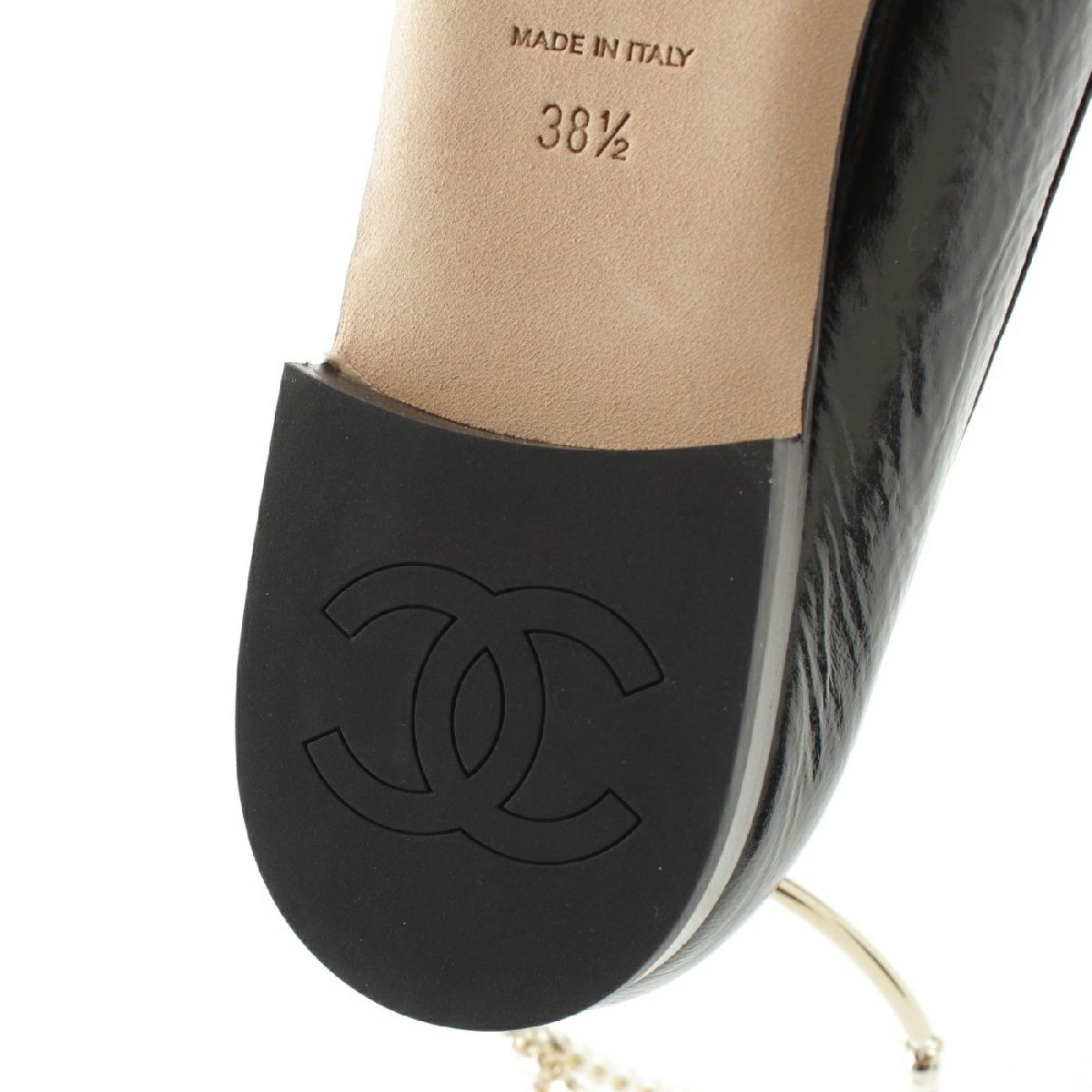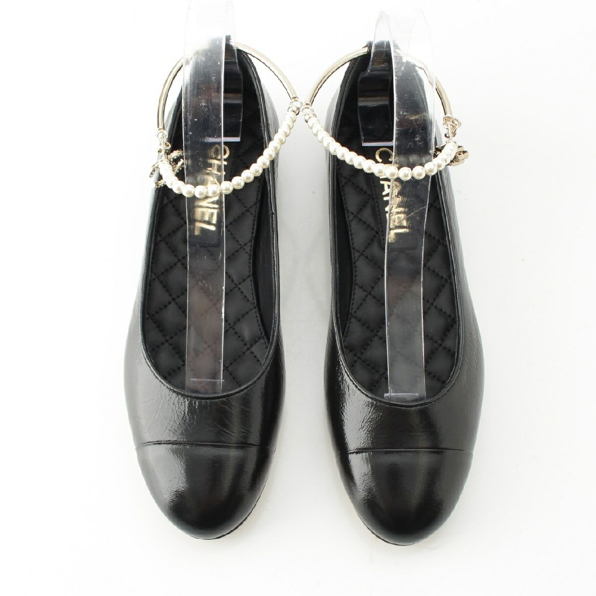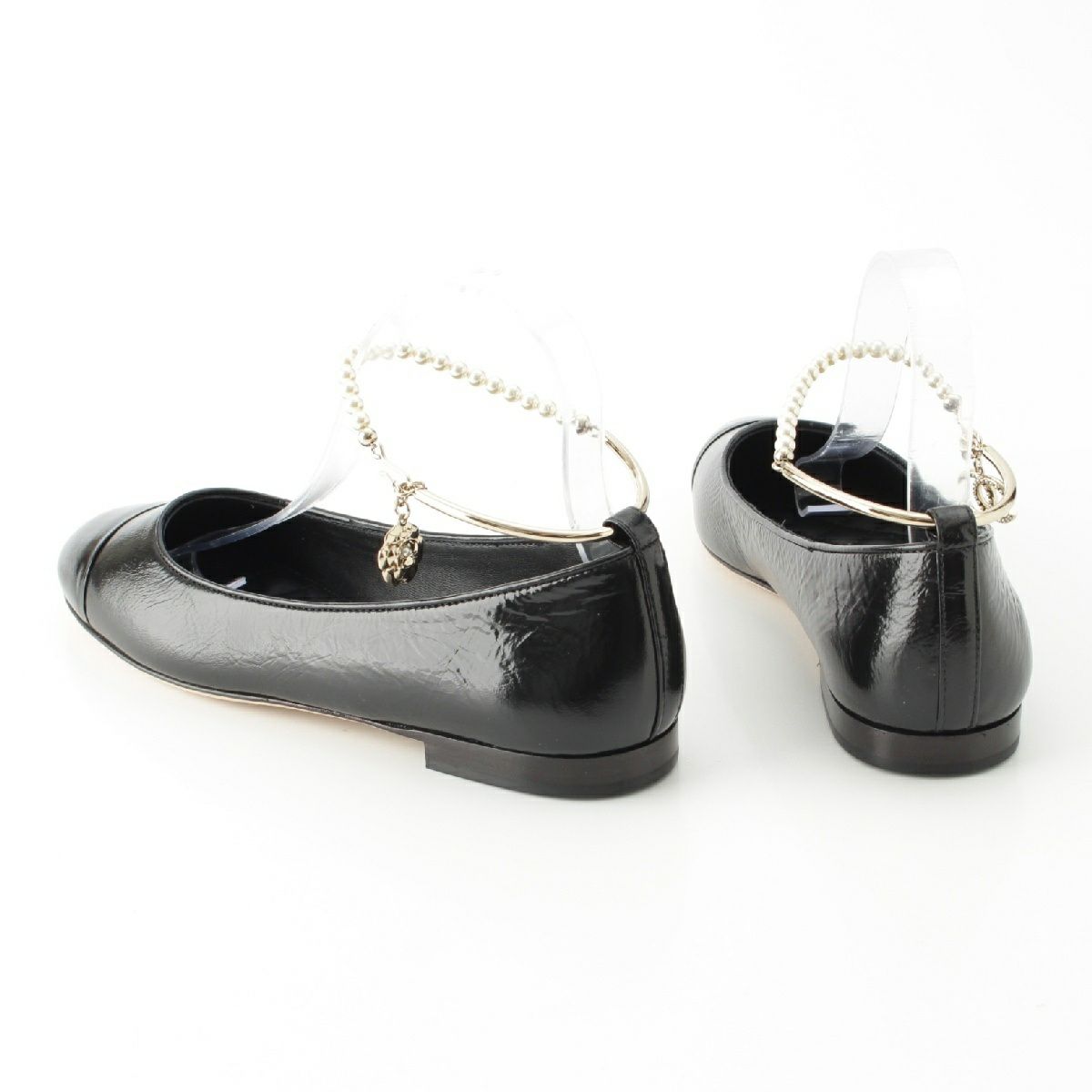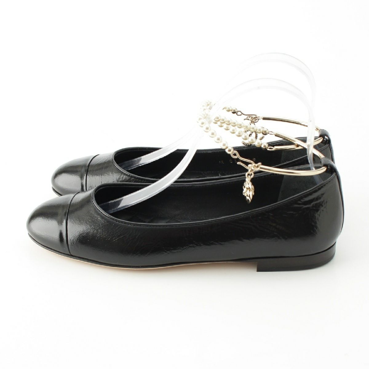 シャネル レザー ココマーク パール チェーン ストラップ バレリーナ パンプス シューズ G38986 ブラック 38.5