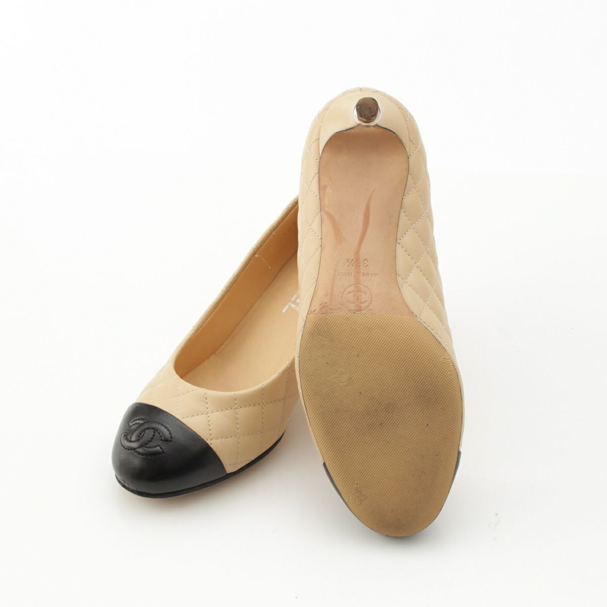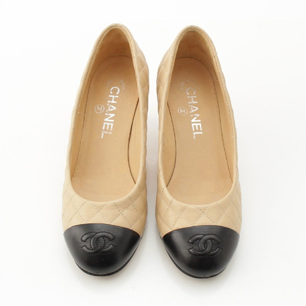 シャネル レザー マトラッセ ヒール パンプス シューズ G30354 ベージュ 36 1/2