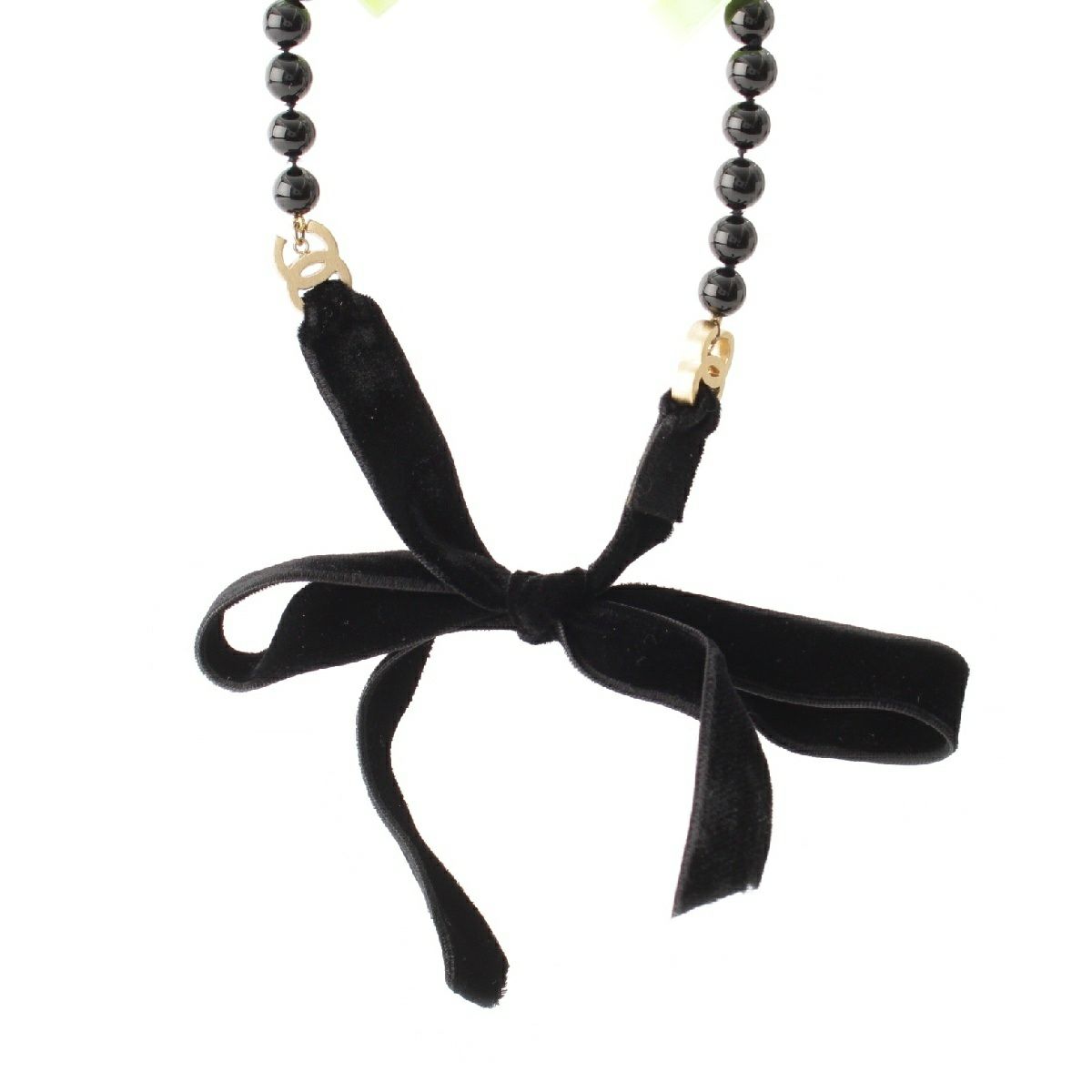 シャネル ベロア リボン ブラックストーン ネックレス ココマーク アクセサリー 03P ブラック