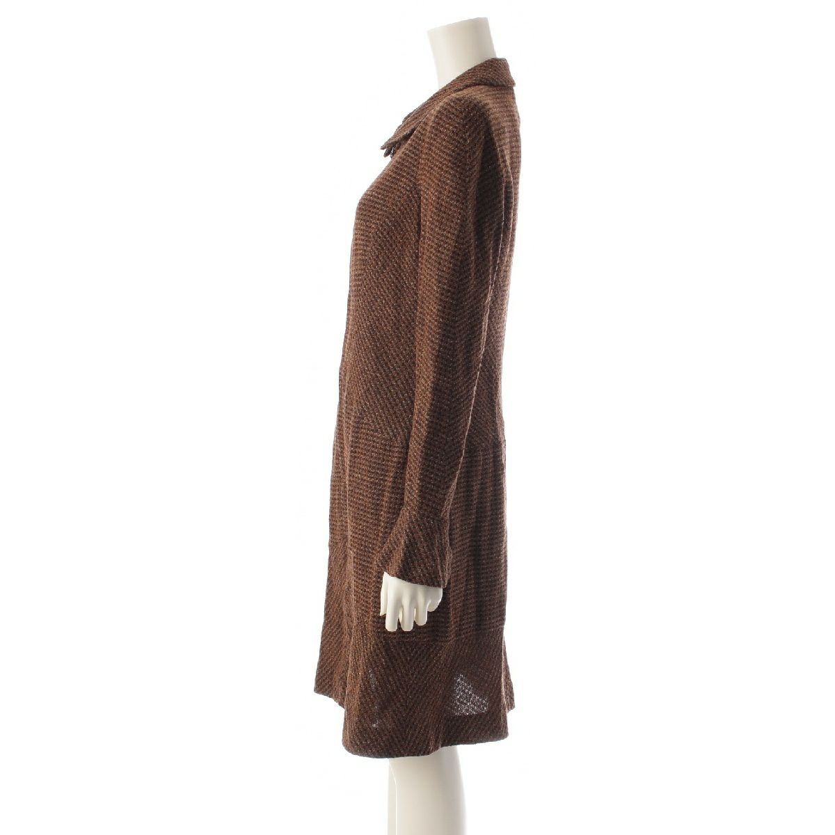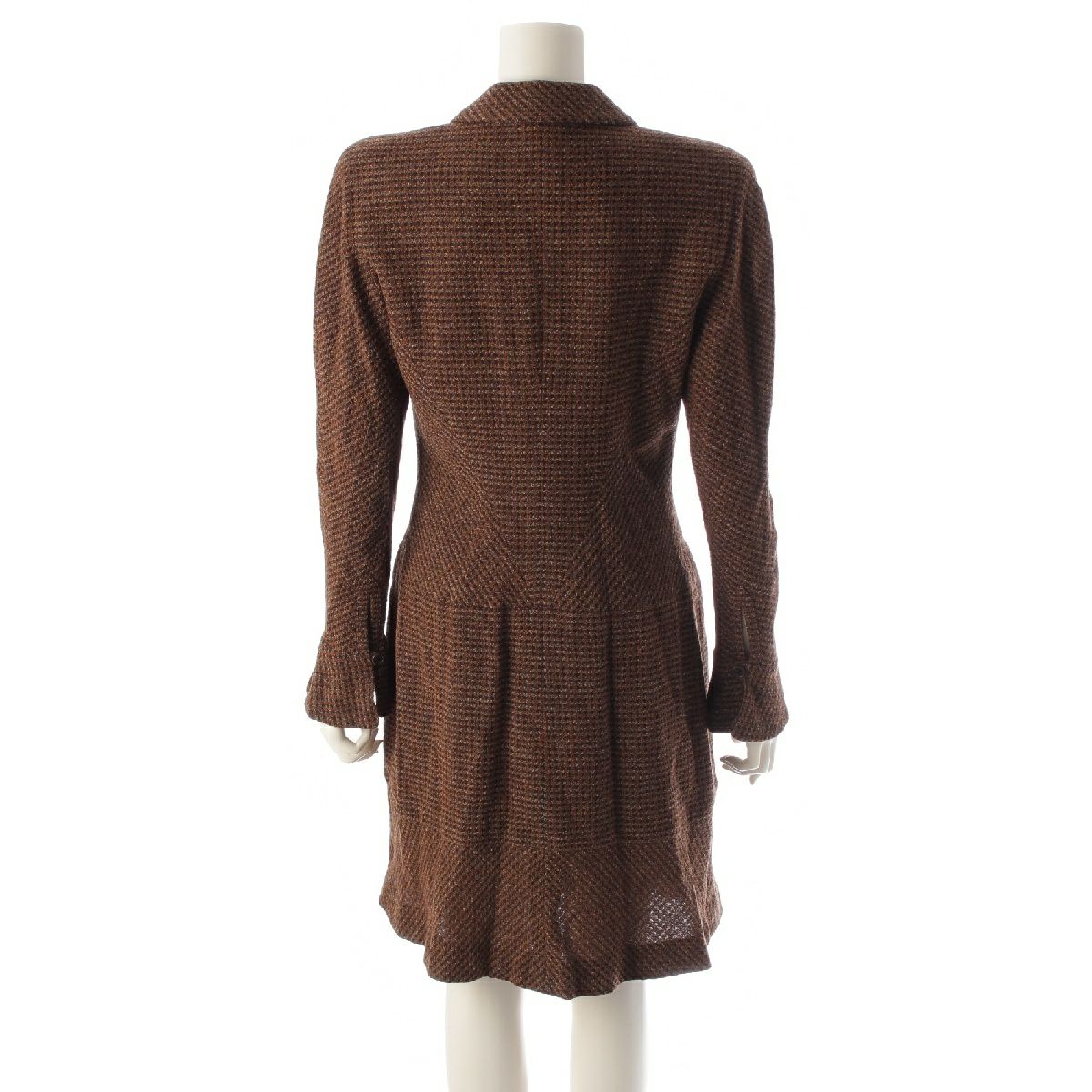 シャネル 97A ウール ツイード ヴィンテージ ジップアップ ワンピース ドレス ブラウン 42