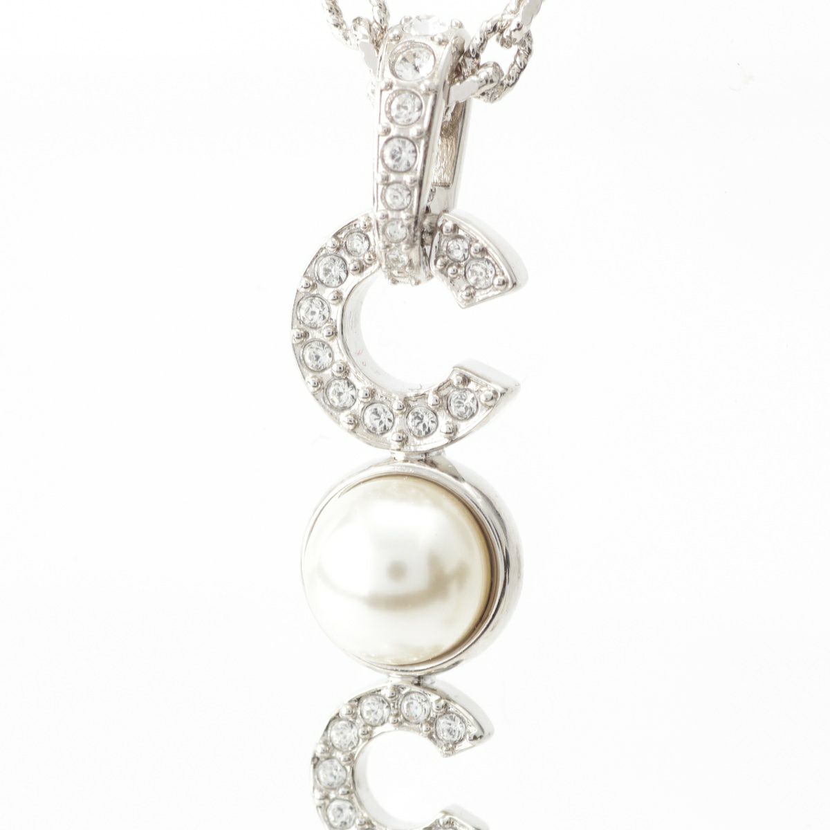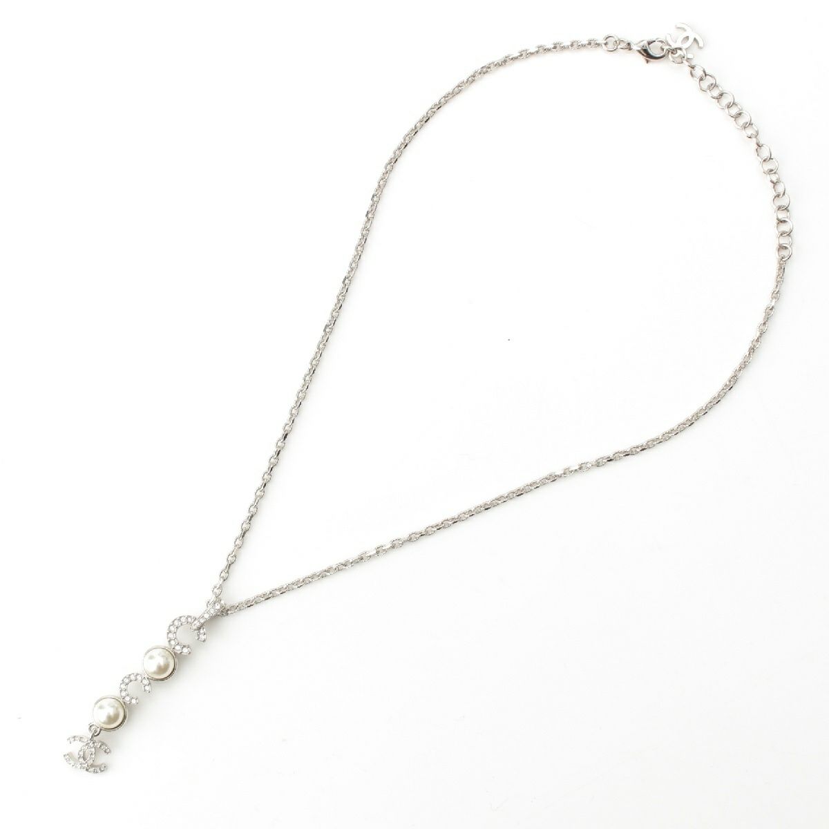 シャネル 25SS ココマーク パール ラインストーン ネックレス アクセサリー ABF722 シルバー