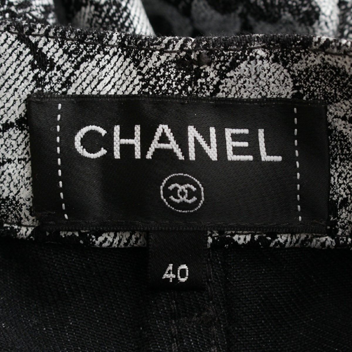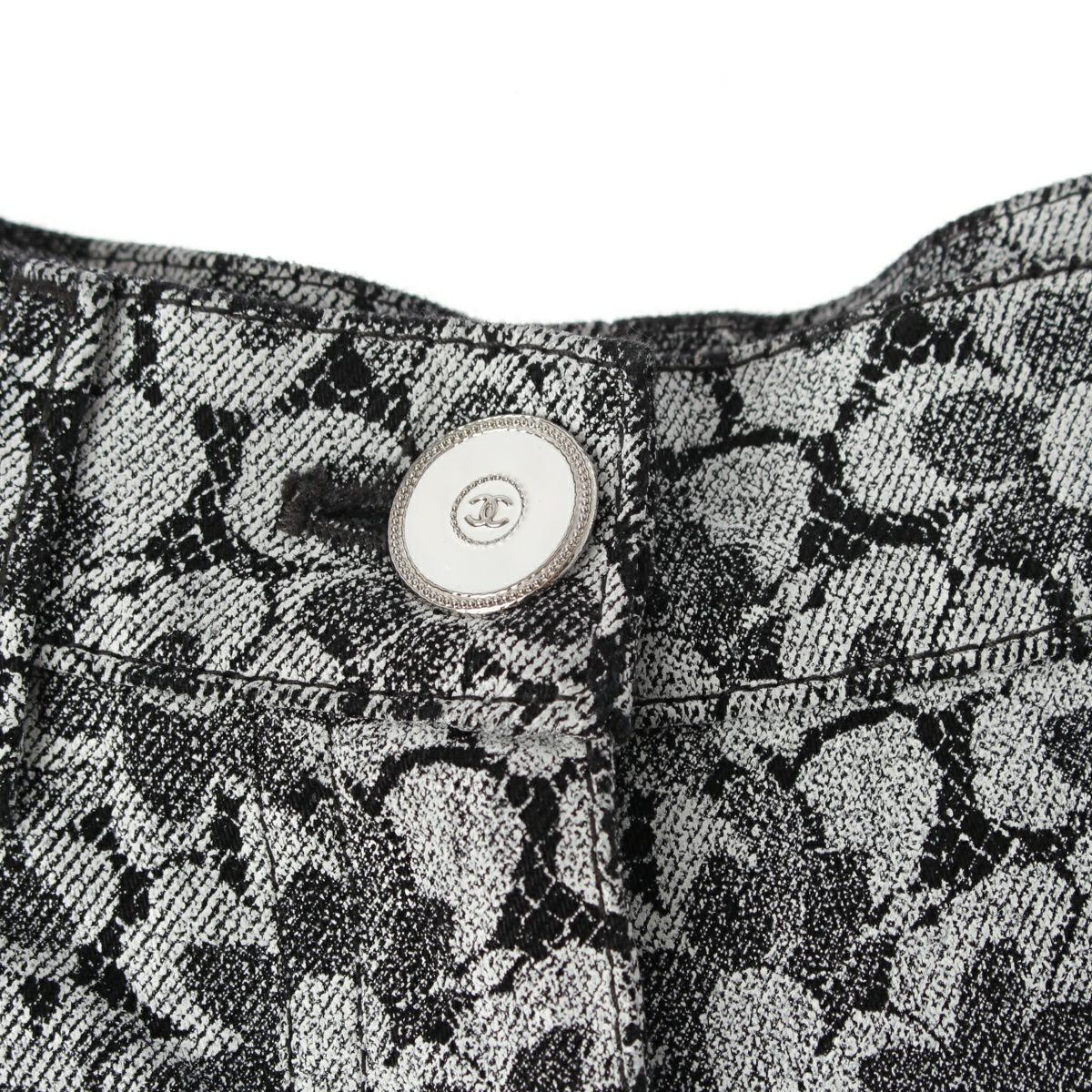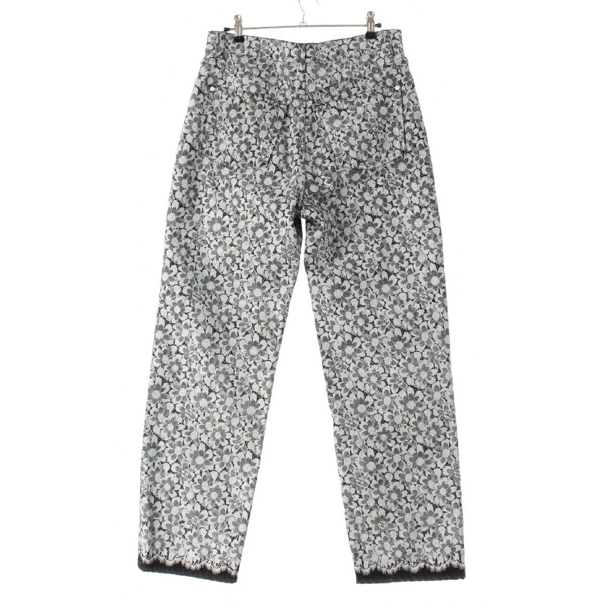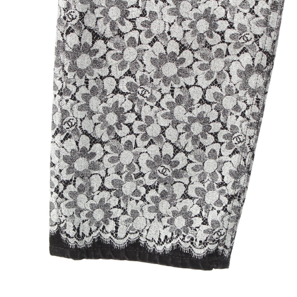 シャネル コットン ココマーク カメリア レース プリント デニムパンツ ジーンズ ボトムス P78140 ホワイト ブラック 40