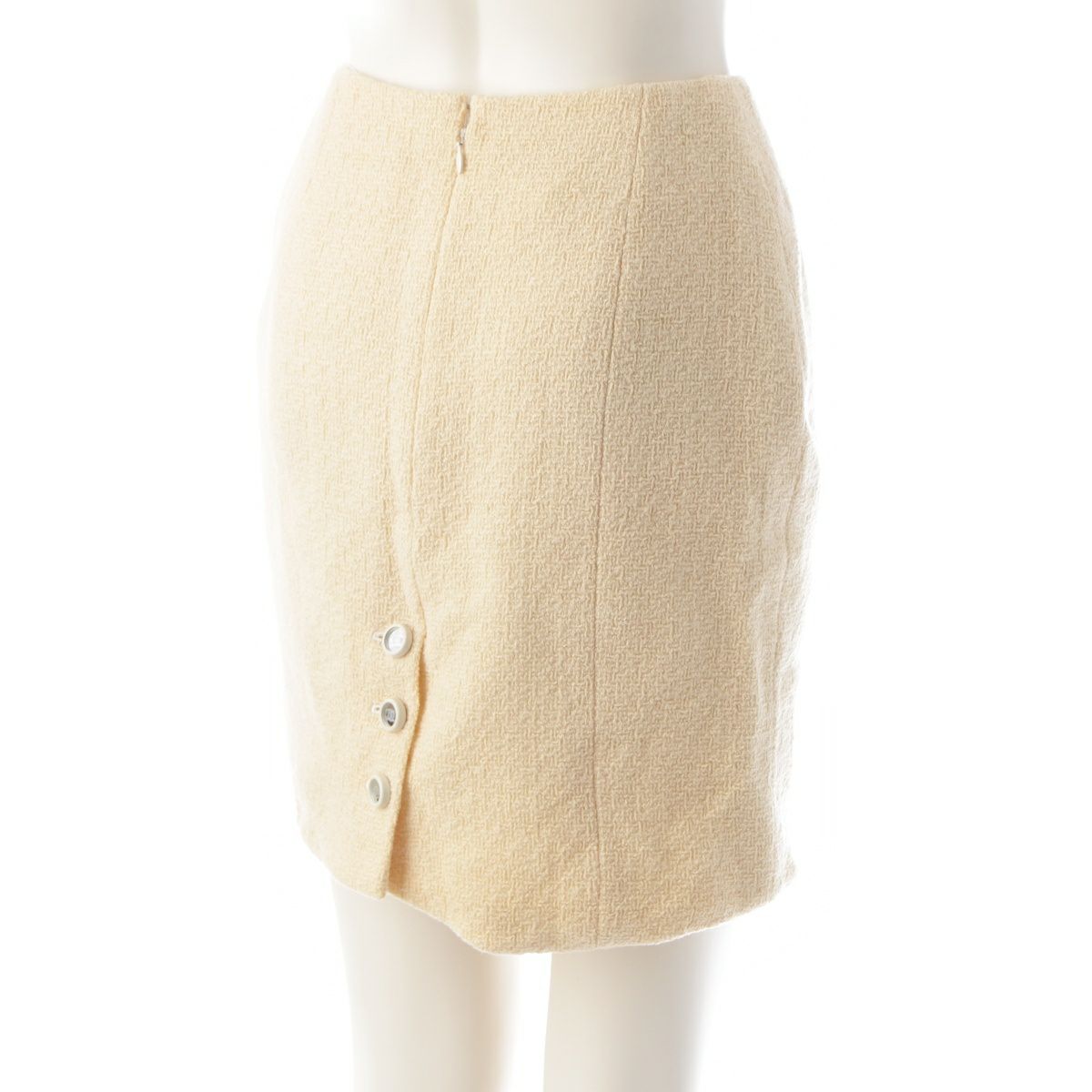 シャネル 90s ウール ツイード ココボタン ミラー ノーカラー ジャケット スカートセットアップ スーツ イエロー