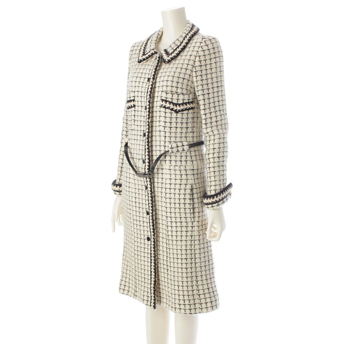 シャネル 00A ココマーク ウール ツイード コート アウター P16301 ホワイト ブラック 42