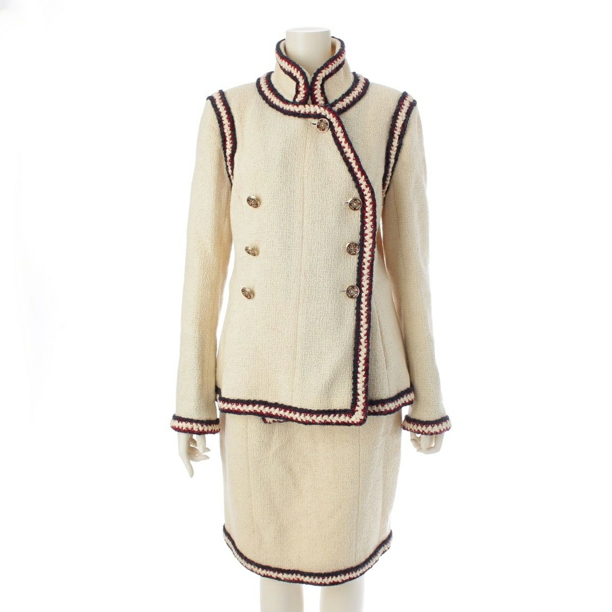 シャネル ウール シルク ダブルジャケット セットアップ スーツ スカートセットアップ P38606 ホワイト 42